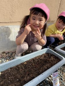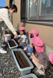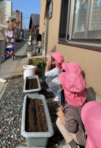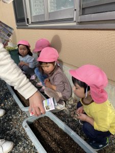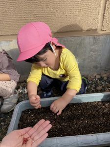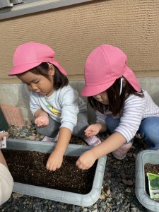 みんなで冬野菜の種を植えます。