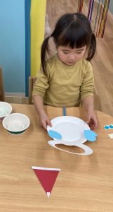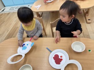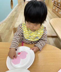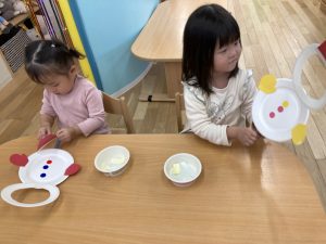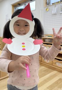 好きな所に貼り、可愛い雪だるまに仕上げていきます。