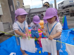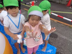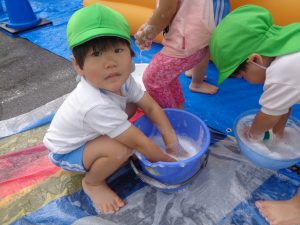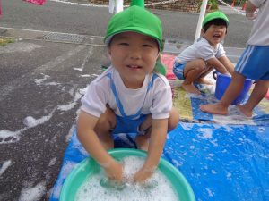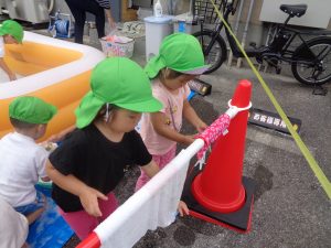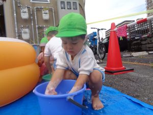 今日は曇り空、風も吹いていたのでプール遊びを変更して