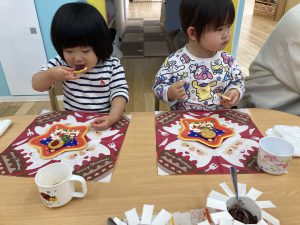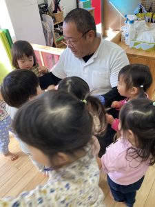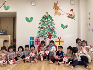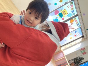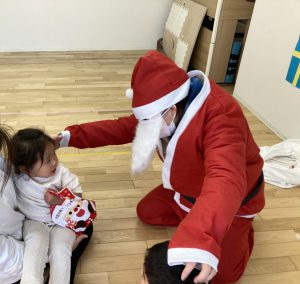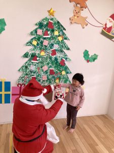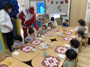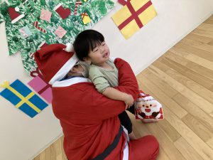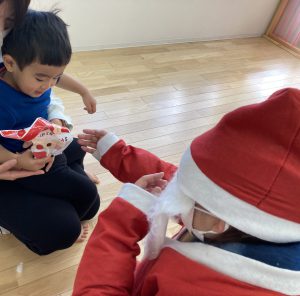 大きくて不思議なサンタさんに泣いてしまう子もいましたが
