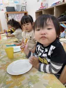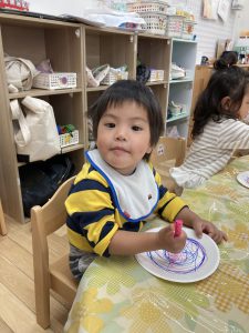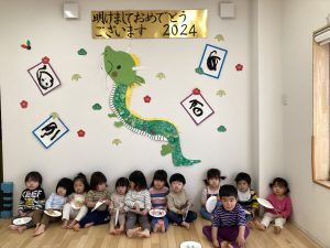 登園するとお正月に食べたもの、じいじばあばの家に行ったこと