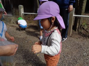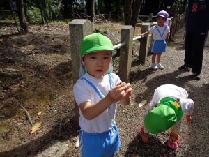 どんぐりを拾おう!2020年10月15日(木) 今日は近所の神社にどんぐりひろいに行きました。 みんな頑張って拾っています。 見つけられたかな? あったよ! 小さくてかわいいどんぐり発見! « 10月のお誕生会 公園でいっぱい遊んだよ! »