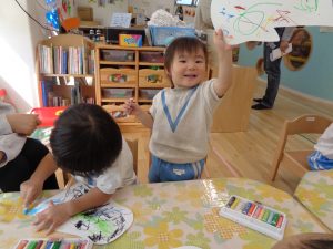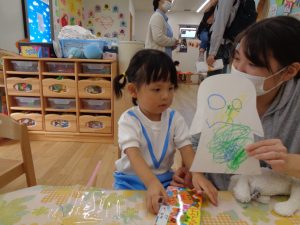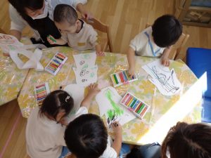 うさぎ組さんは、お化けの顔を描いています。