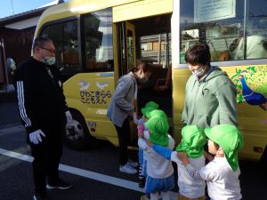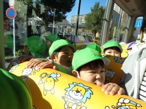 バスに乗ってびわこきららこども園へ向かいます。