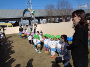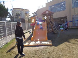 まずは園庭で遊びます。