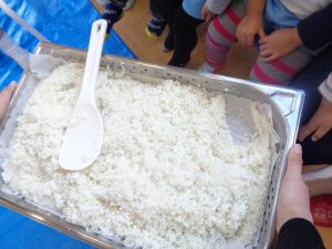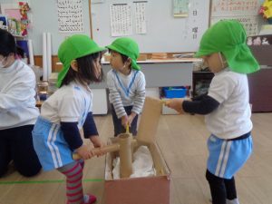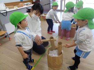 手作りおもちゃのお餅つきもしたよ。