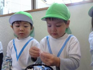 12月17日(木)、こぐまぐみさんはびわこきららこども園へもちつき体験に行きました。