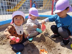 公園では、滑り台や砂場、ブランコ、しゃぼん玉など