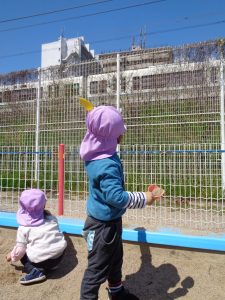 電車の見える、池之尻公園へお散歩をしに行きました。