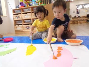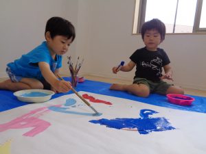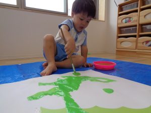 絵の具でお絵描き楽しいね2020年5月28日(木) 昨日こぐまぐみさんは、絵の具でお絵描きをしました。 大きな紙に、好きなように絵を描きます。 みんなとっても上手です 素敵な作品ができました! 今日のおまけ ちょうちょを捕まえたよ! « おべんとうバス 小さなかわいい芸術家たち »