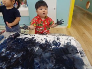 沢山付けて絵の具の感触も味わいました。