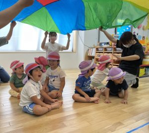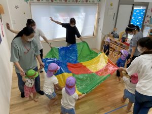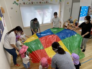 手作りのパラバルーンで演技を楽しみました。