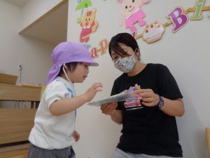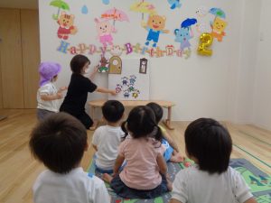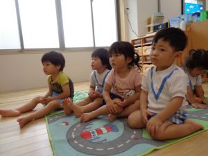 6月のお誕生日会2020年6月26日(金) 今日は6月のお誕生日会です プレゼントは”お誕生日の絵本”です お祝いに、先生からのお話「おおかみと7匹のこやぎ」 みんな真剣に見ています お誕生日おめでとう! « 雨の日です 七夕の製作 »