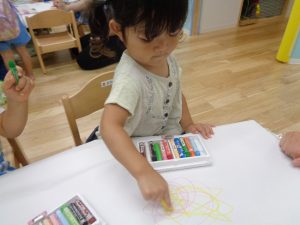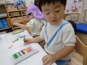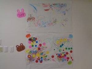 大きな模造紙に絵を描きます