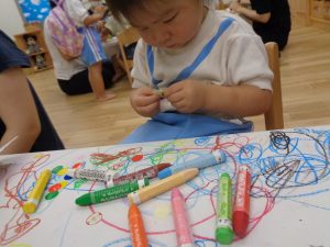 シールも貼るよ。ぺたん!