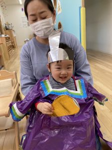 紙芝居の中でぶたのぶーこちゃんが着物を着ていたので