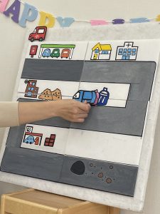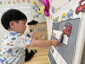 好きな車をパネルに貼ってもらいました。