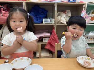 たくさん遊んだ後は、楽しみにしていた給食!