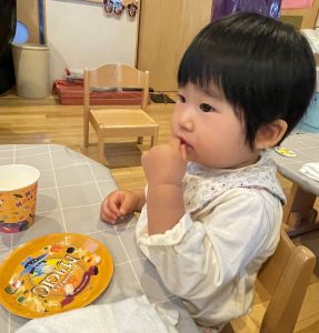 朝おやつを食べて