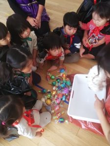 おやつ後のゲームはキャンディー探し♪