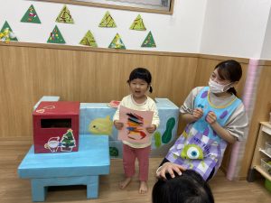その後、みんな一枚ずつサンタクロース🎅にお手紙を書きこぐま組は、みんなに見せました🎵
