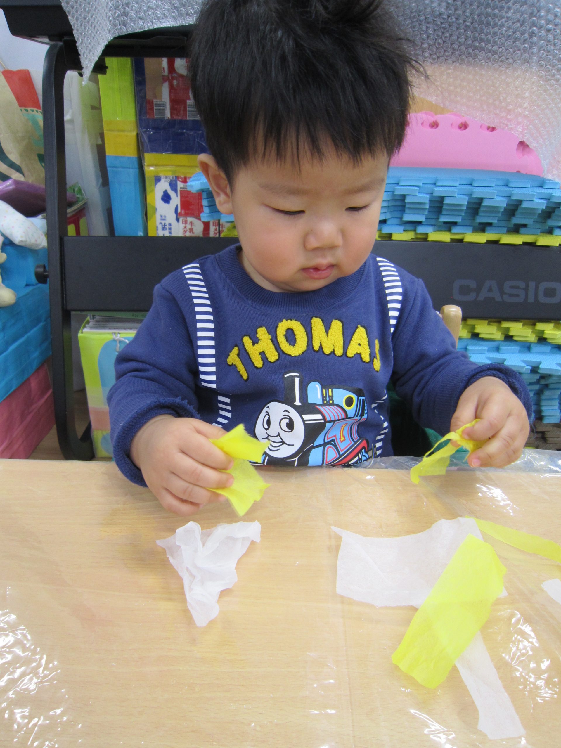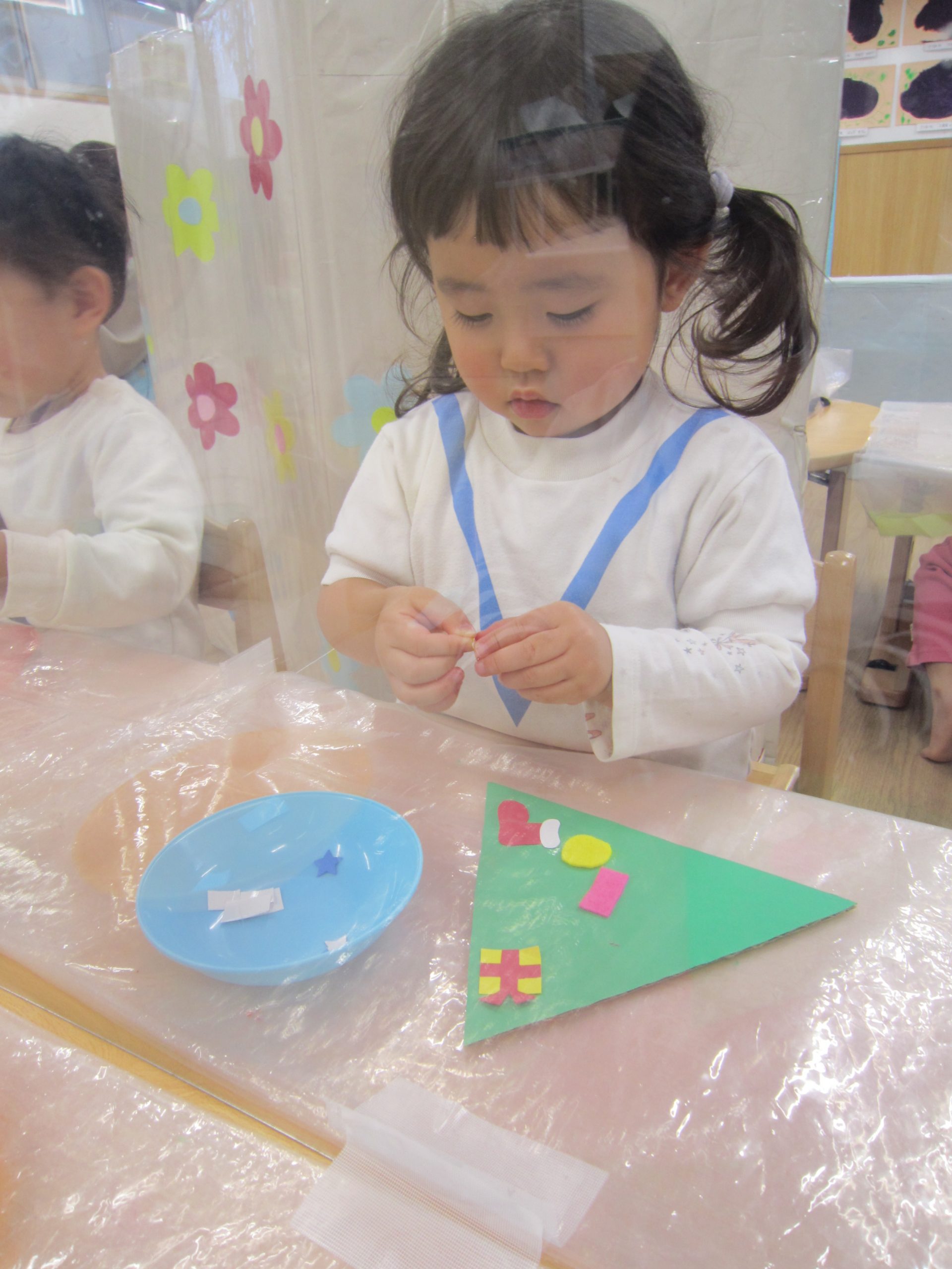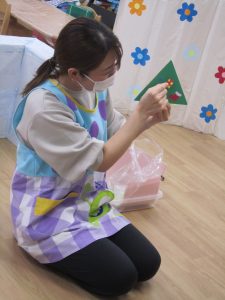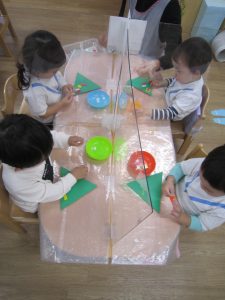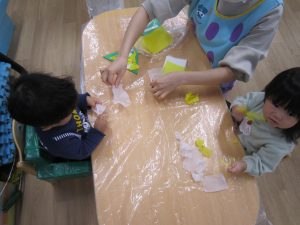 お花紙を破ってから丸めてペッタン