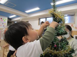 そして、今日はみんなでツリーの飾りつけをしました♬