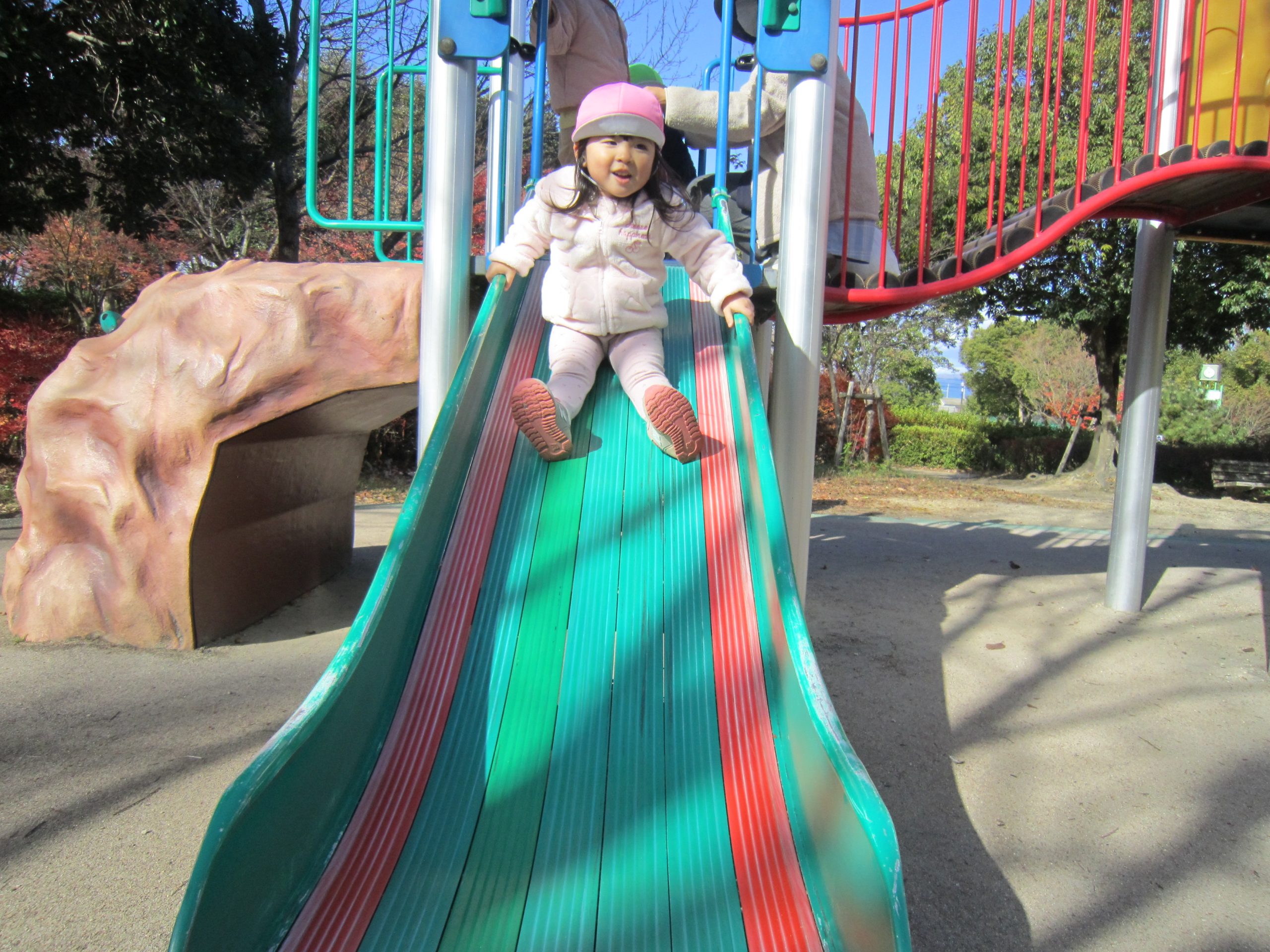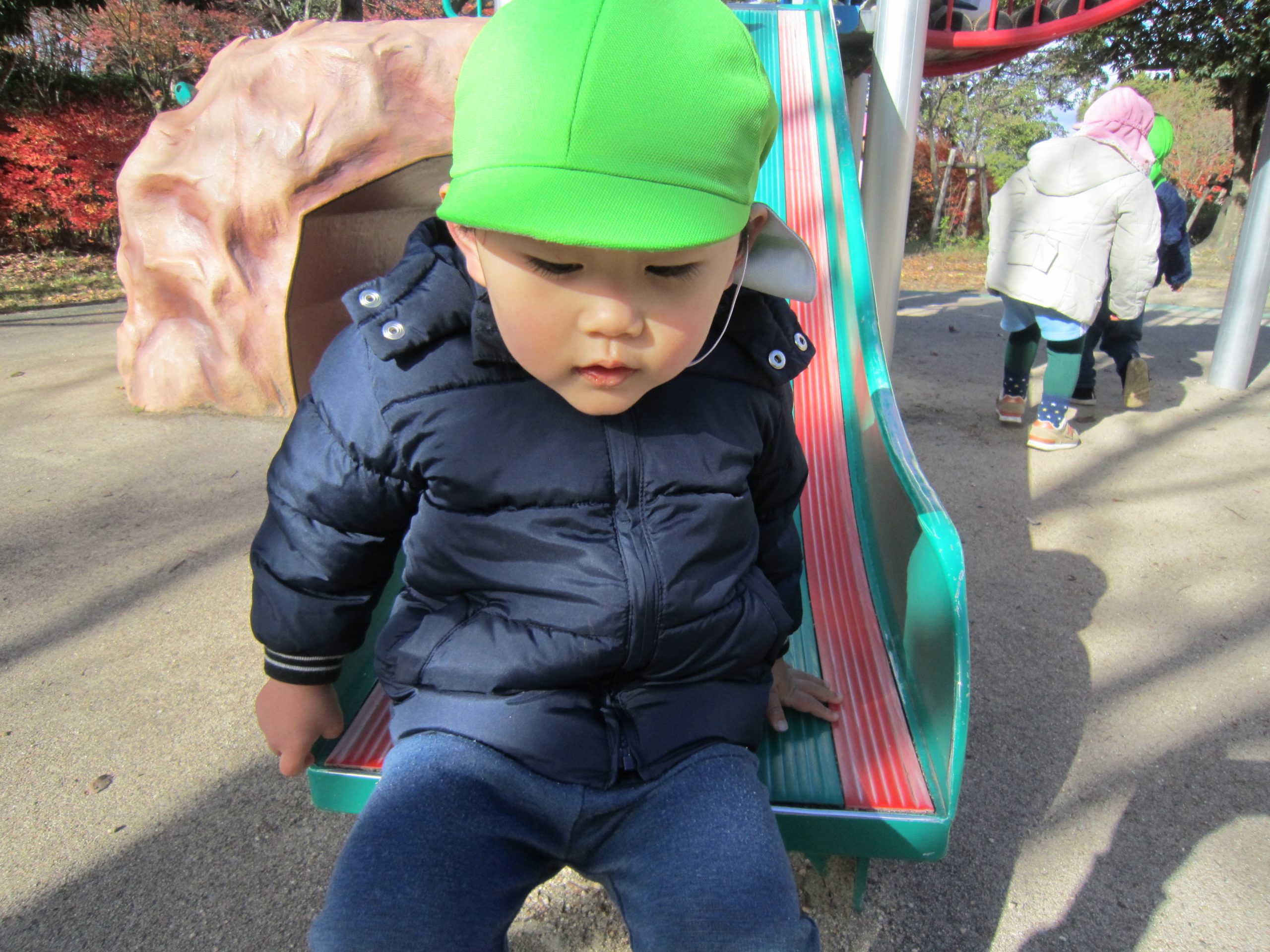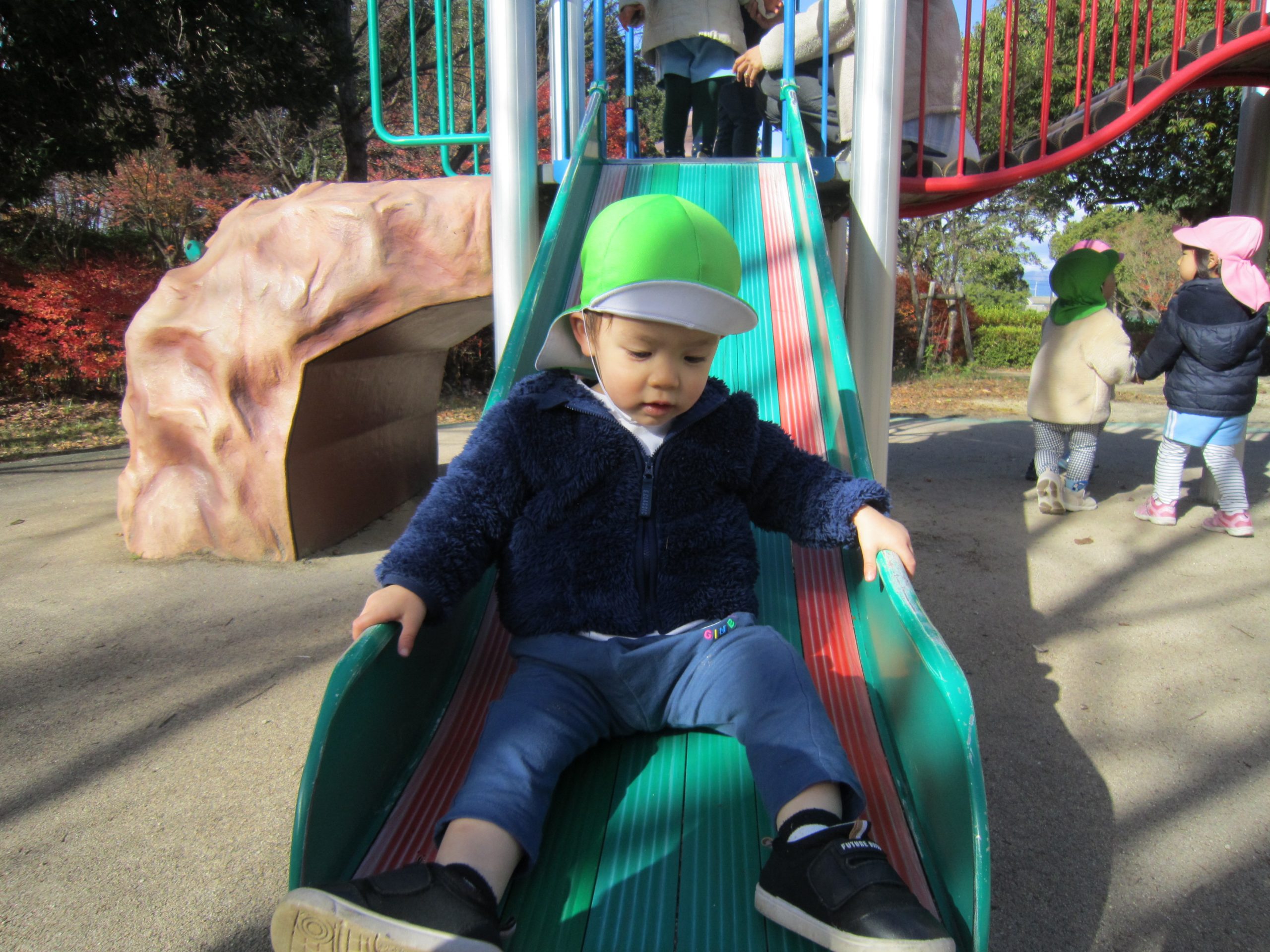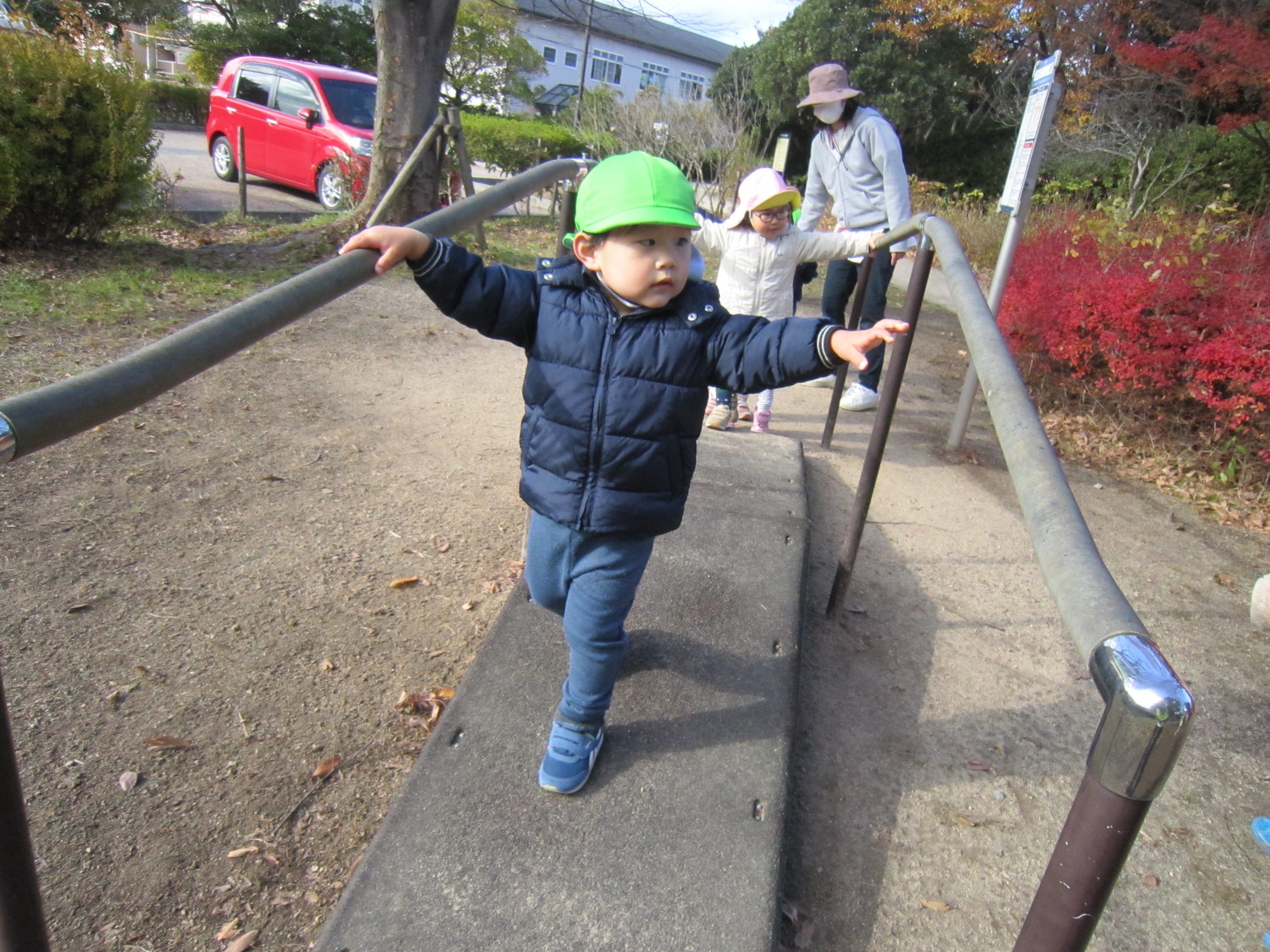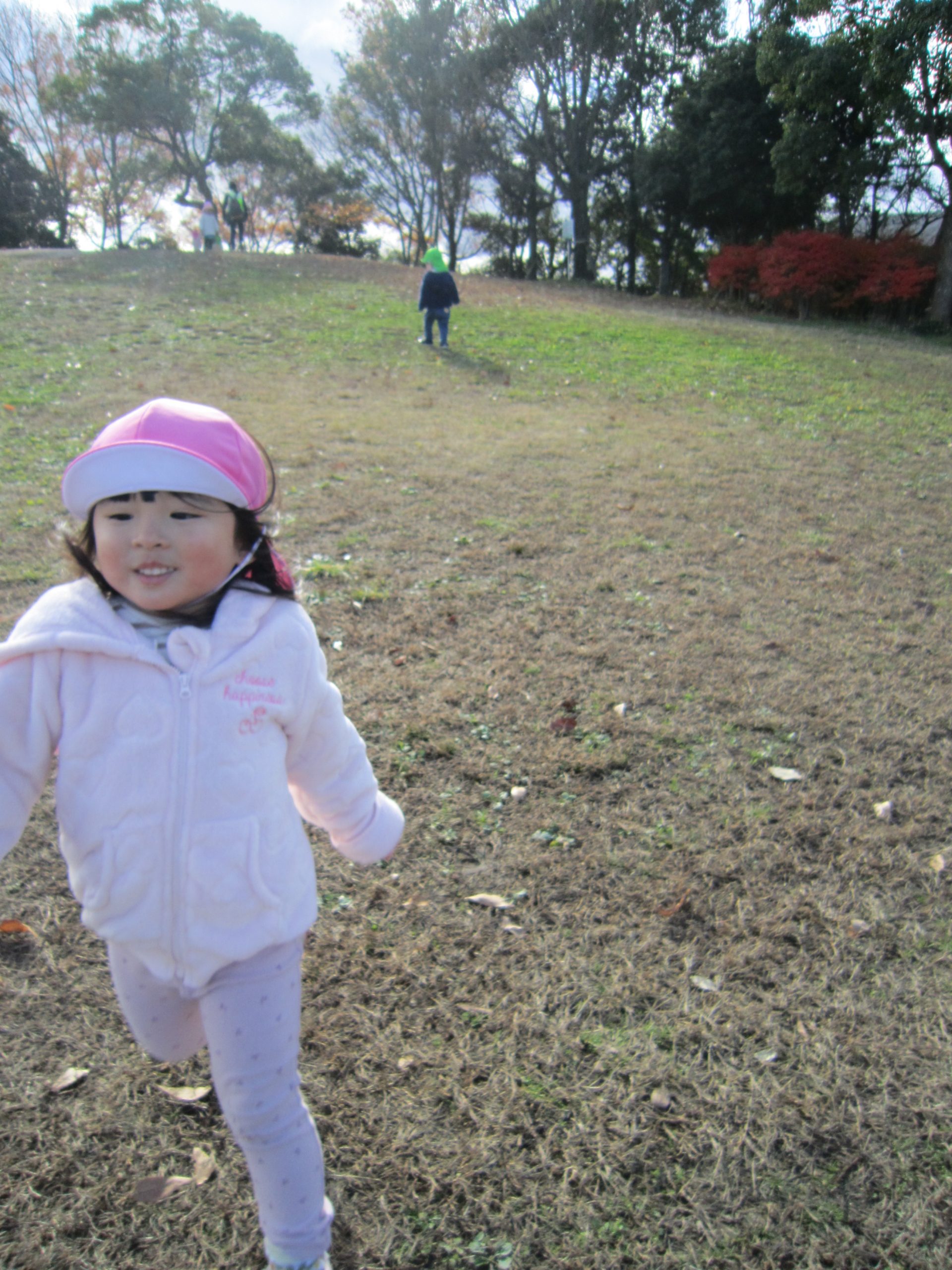 ふれあい公園 うさぎ組 こぐま組 2022年12月14日(水) 今日は、ふれあい公園へ行きました♪ 久しぶりにふれあい公園へ行くので子ども達は「どんぐり落ちてるかな・・?」と言って思い思いにお話を楽しみながら公園へ向かいました🎵 公園に着くと早速芝山を走りました🎶 走り終わった後は、公園の周りを歩きました❕ すると、歩ける所を見つけ・・・1人ずつ歩いてみました❕ その後、滑り台で遊んでから帰ってきました🎵 楽しかったね🎶 また行こうね🎵 « 12月のお誕生日会🎶 クリスマスの準備🎶 »