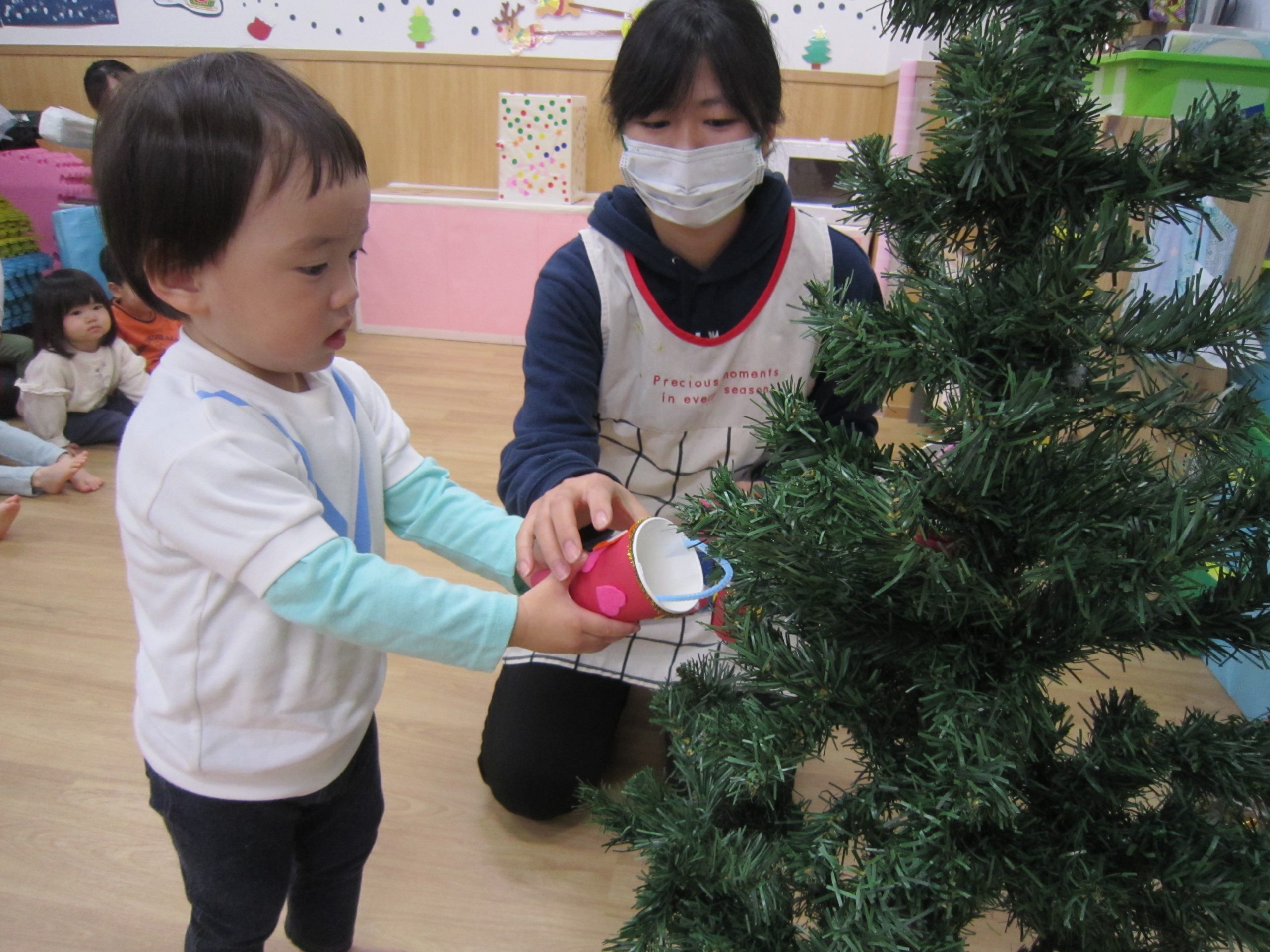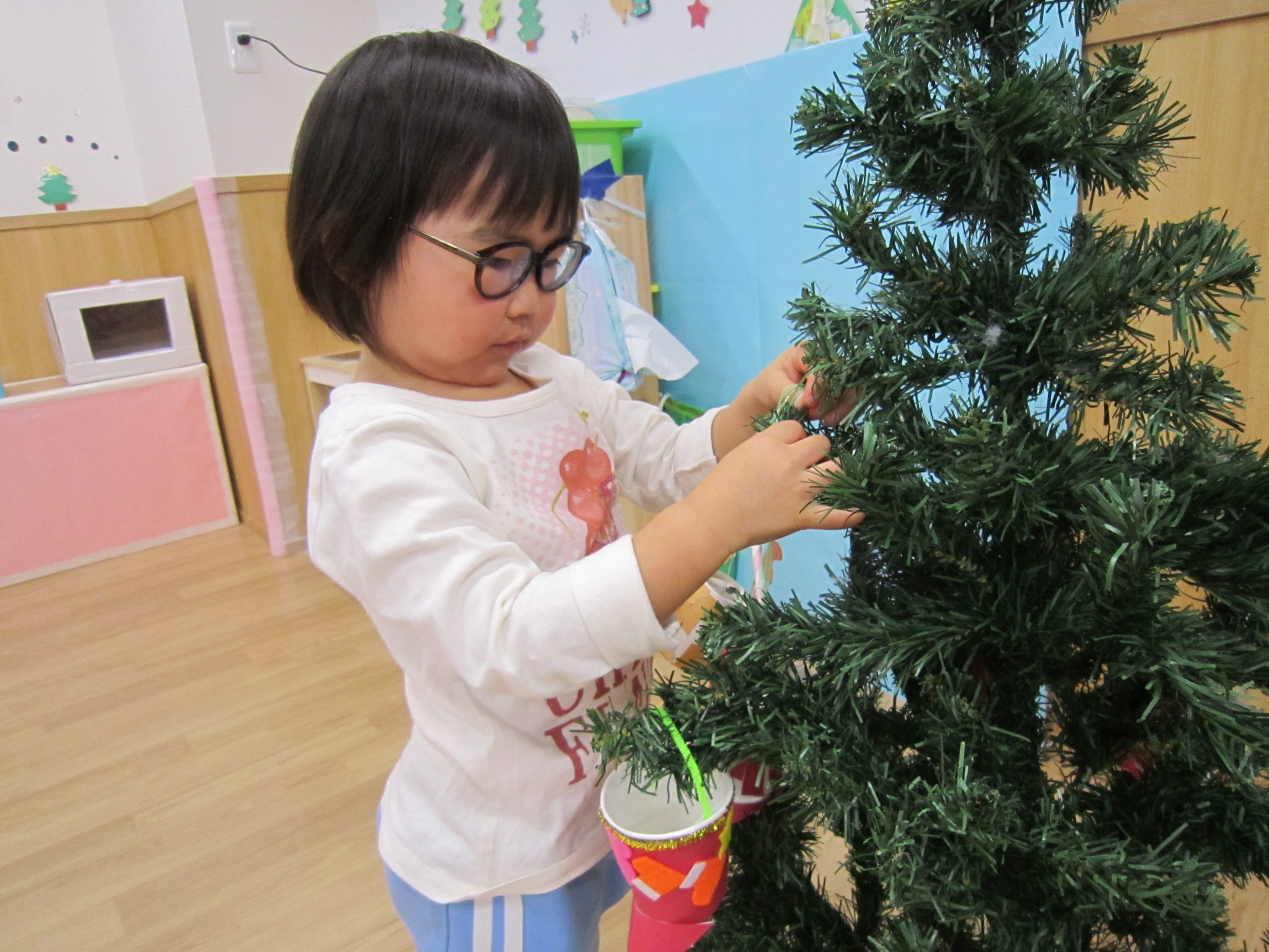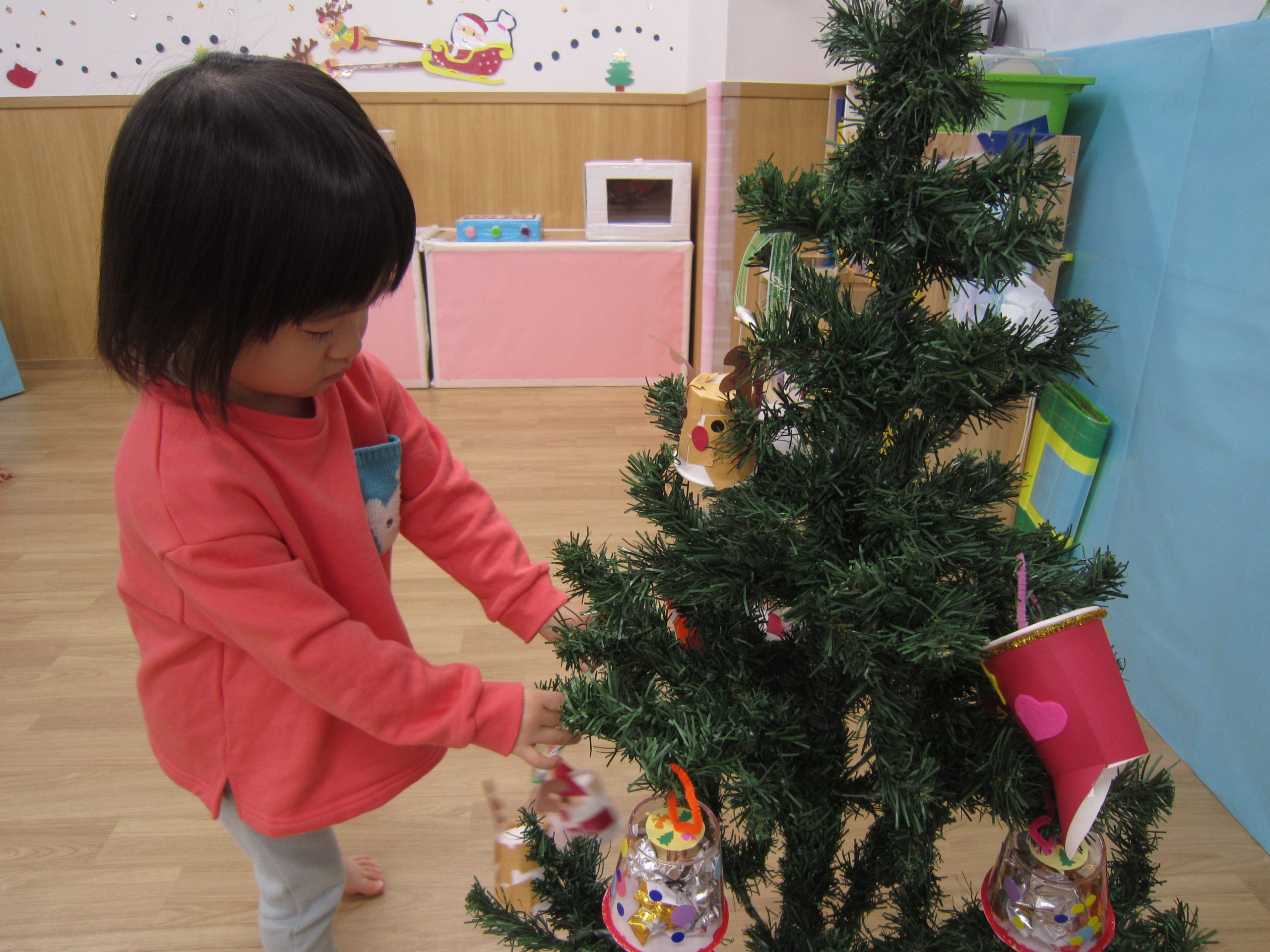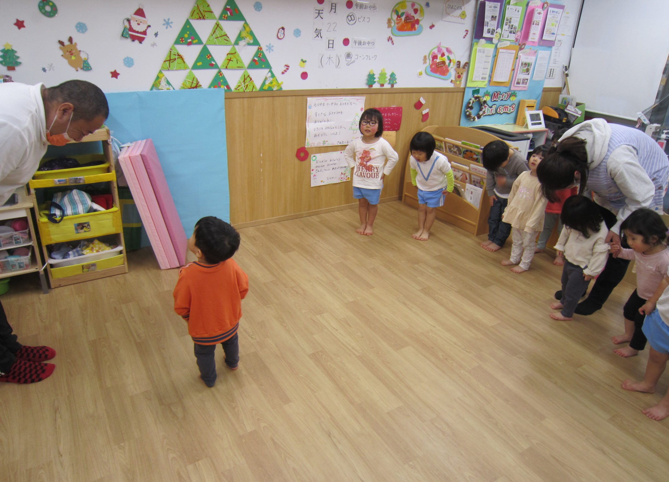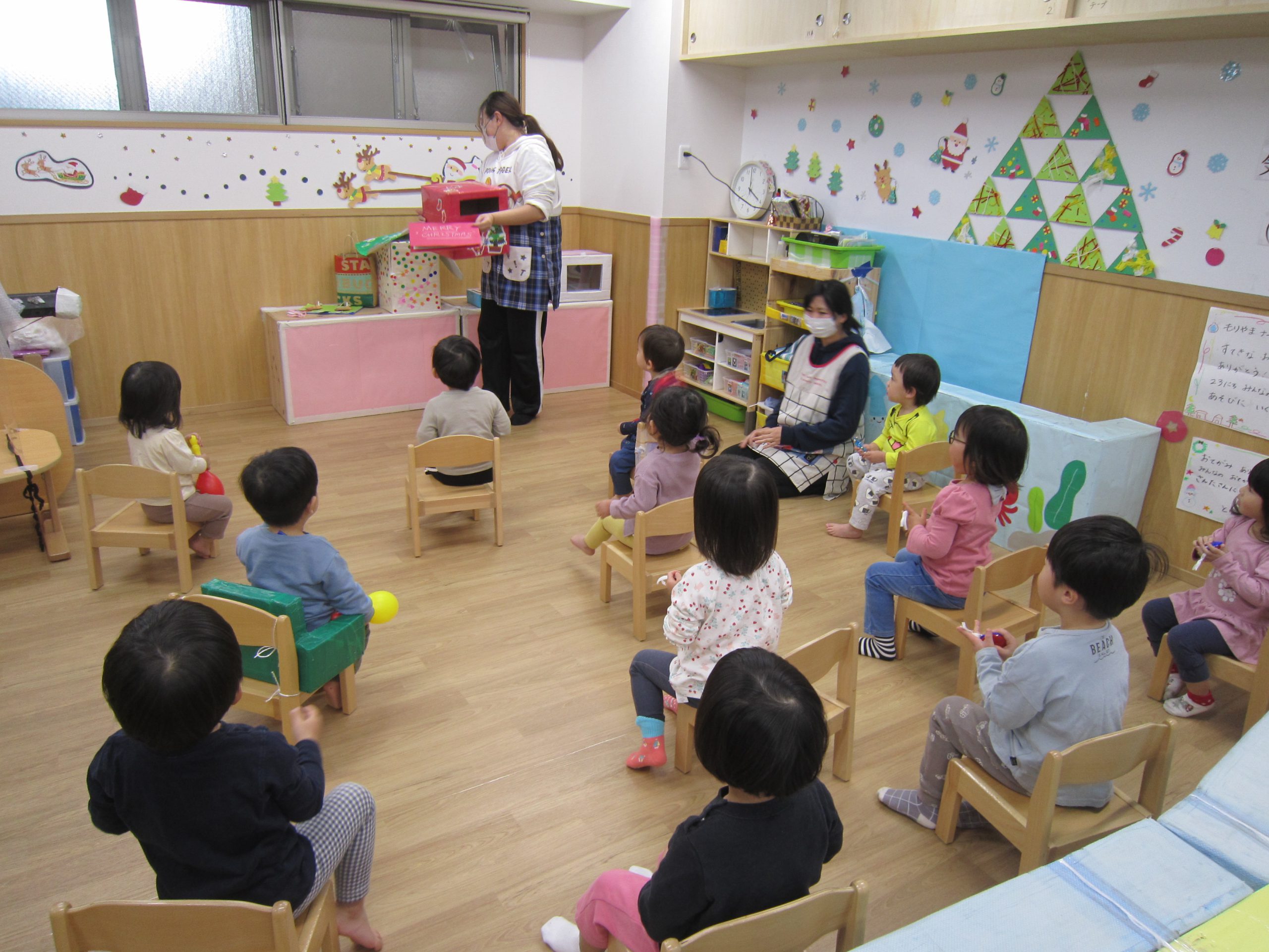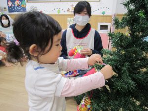 クリスマス会に向けて🎶2022年12月23日(金) 昨日は、今日のクリスマス会に向けて各クラスごとに作ったオーナメントをクリスマスツリーに飾りました🎶 そして、素敵なクリスマスツリーが完成しました🎵 その後、体操教室に参加しました🎶 今年の体操教室は昨日でおしまいです。しっかりと挨拶をして終わりました。 そして、そして・・・・ 終わりの会の時にポストの中を見ると・・・ サンタクロースからお手紙が届いていました❕ 子ども達は大喜びです♪ さてさて・・・ 今日はサンタクロースに会えるかな・・・・? « クリスマス会♬ 12月のお誕生日会🎶 »