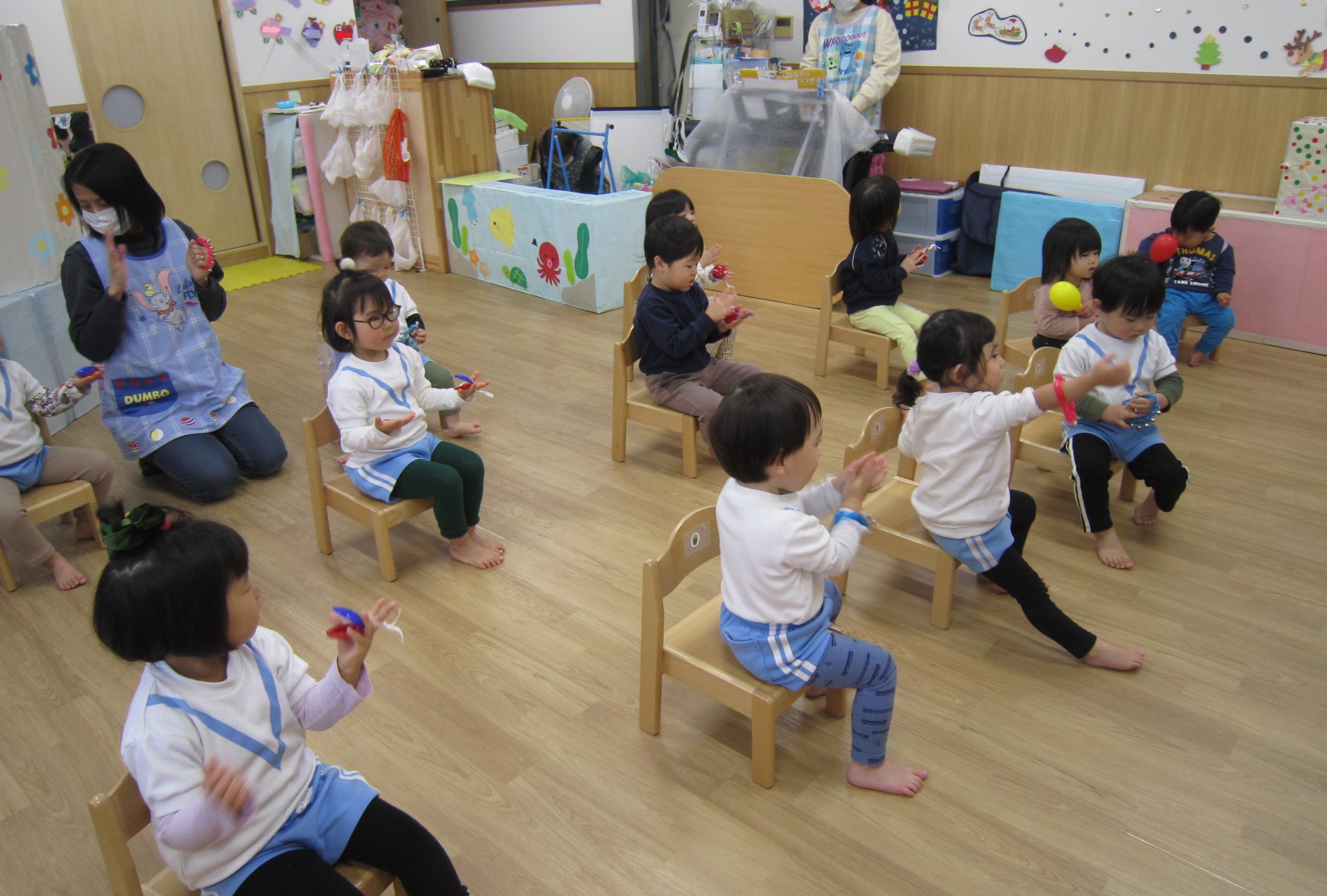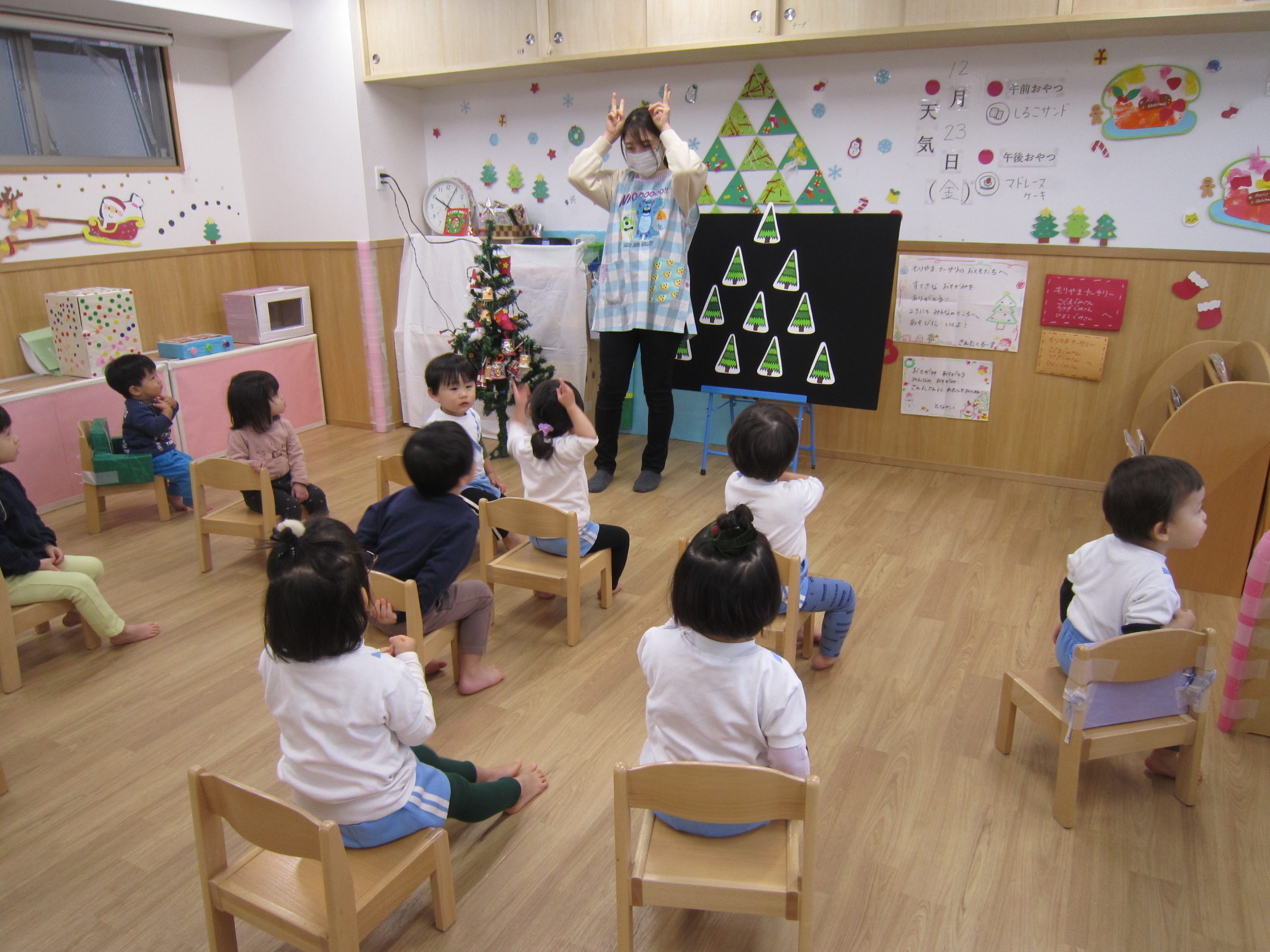 その後、“あわてんぼうのサンタクロース”の合奏をしたり、絵本を見たりして楽しみました🎶