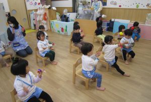 まずは、“トントントントン サンタさん”の手あそびを楽しみました♬