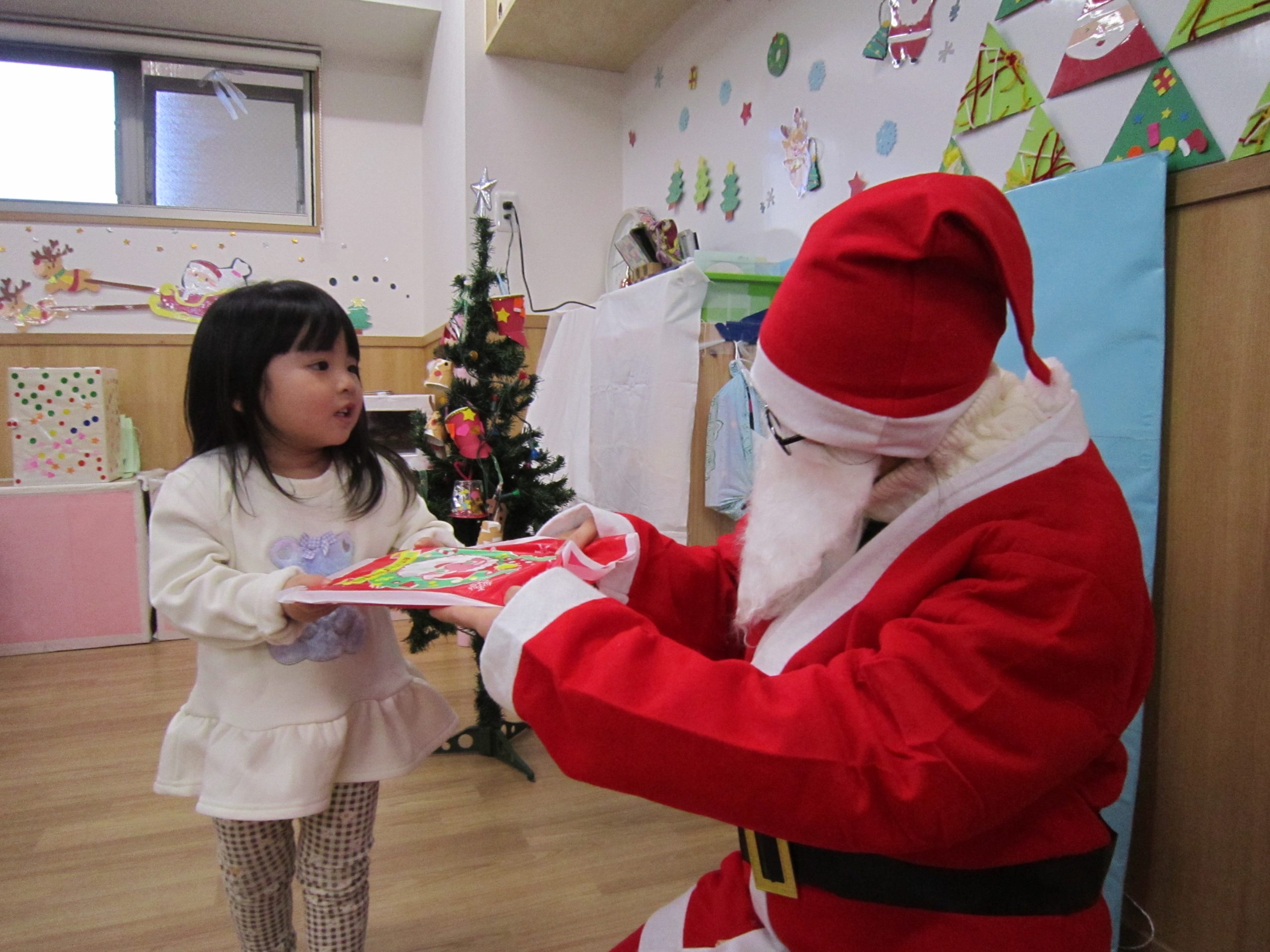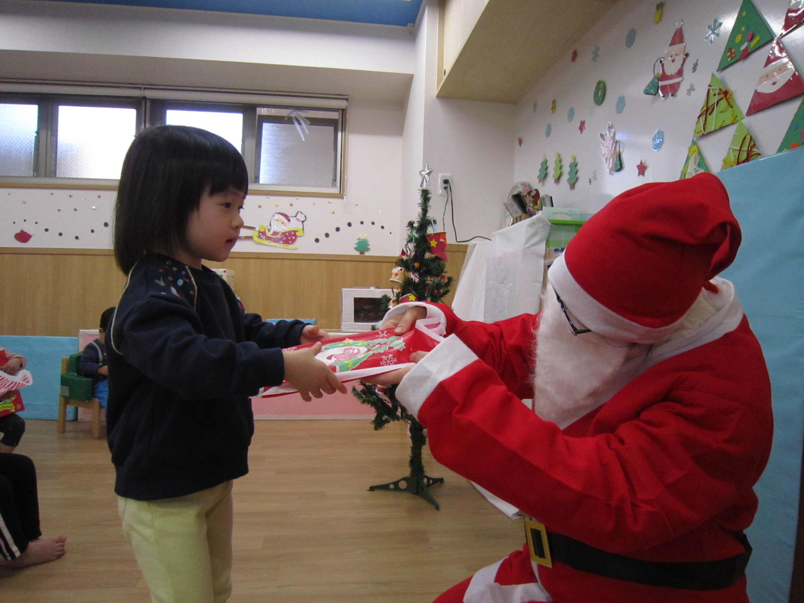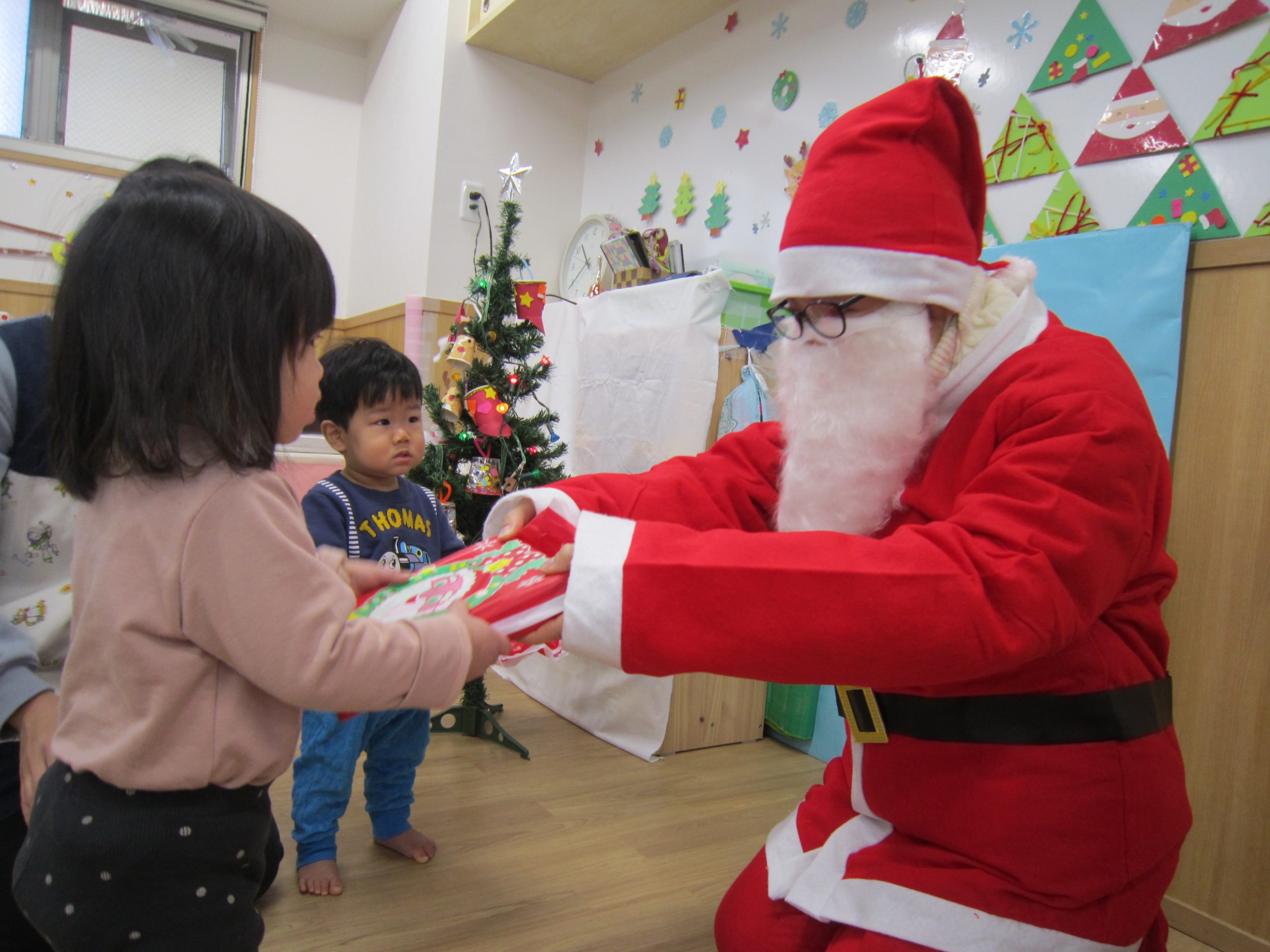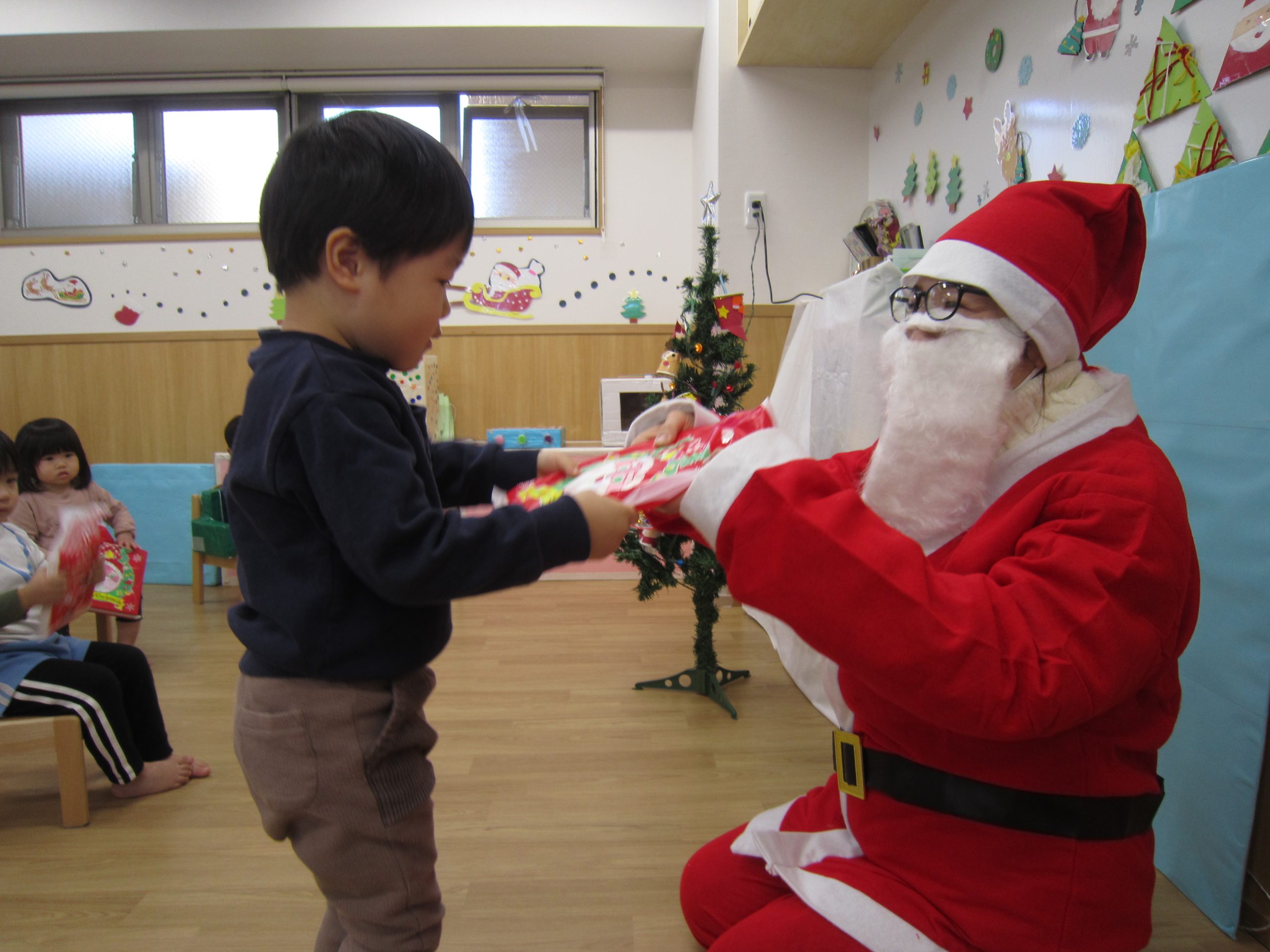 念願のサンタクロースに会え、プレゼントももらえたので子ども達は大喜びでした🎶