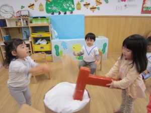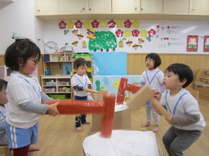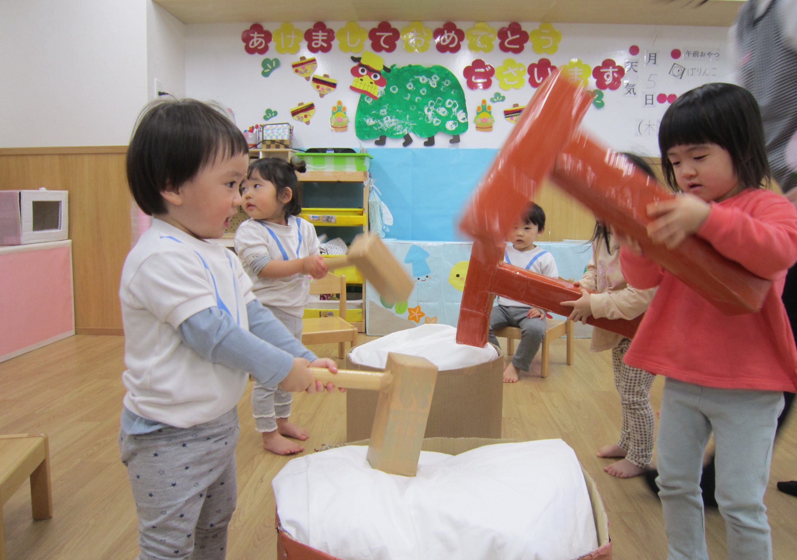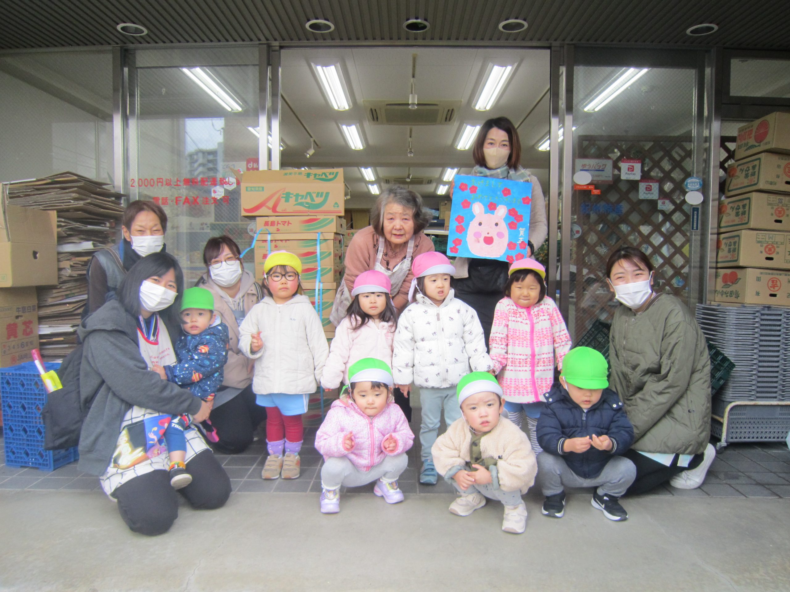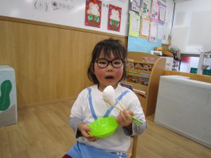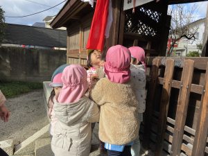 令和5年 スタート❕2023年1月5日(木) 今日から登園する子どもがたくさんいました♪ 賑やかに令和5年がスタートしました。 今日の一日の始まりは、日課活動からスタートしました🎶 その後、みんなでお餅つきごっこを楽しみました🎶 そして、手作り玩具のお餅を食べました🎶 そして、えんどう食料品店さんに年末に頂いたみかんのお礼と、新年の挨拶に行きました🎶 さぁ~ 天満宮へ初詣に行こう🎵 今年もよろしくお願いします。 « みんなで一緒に凧揚げ🎶 大掃除 »