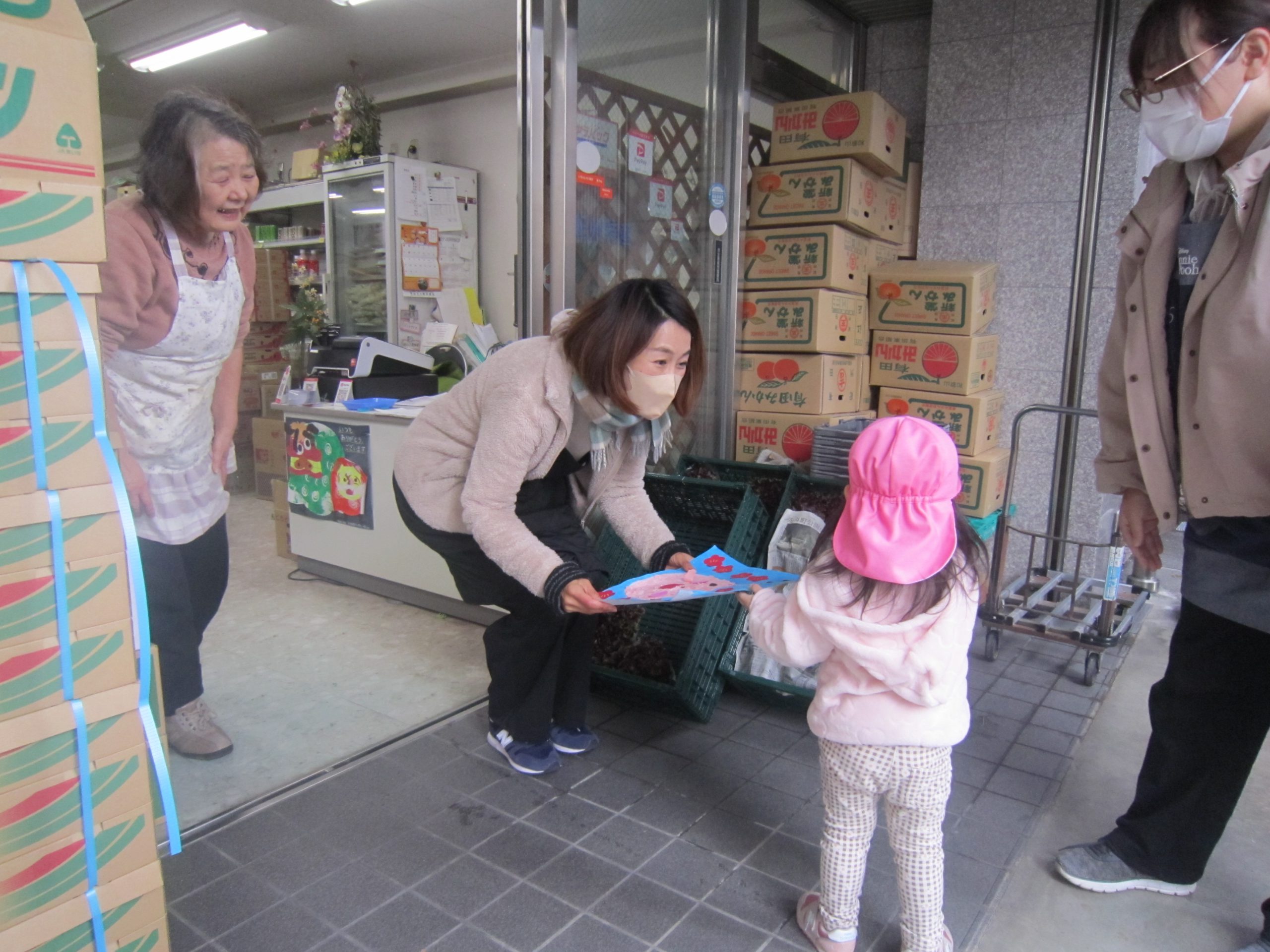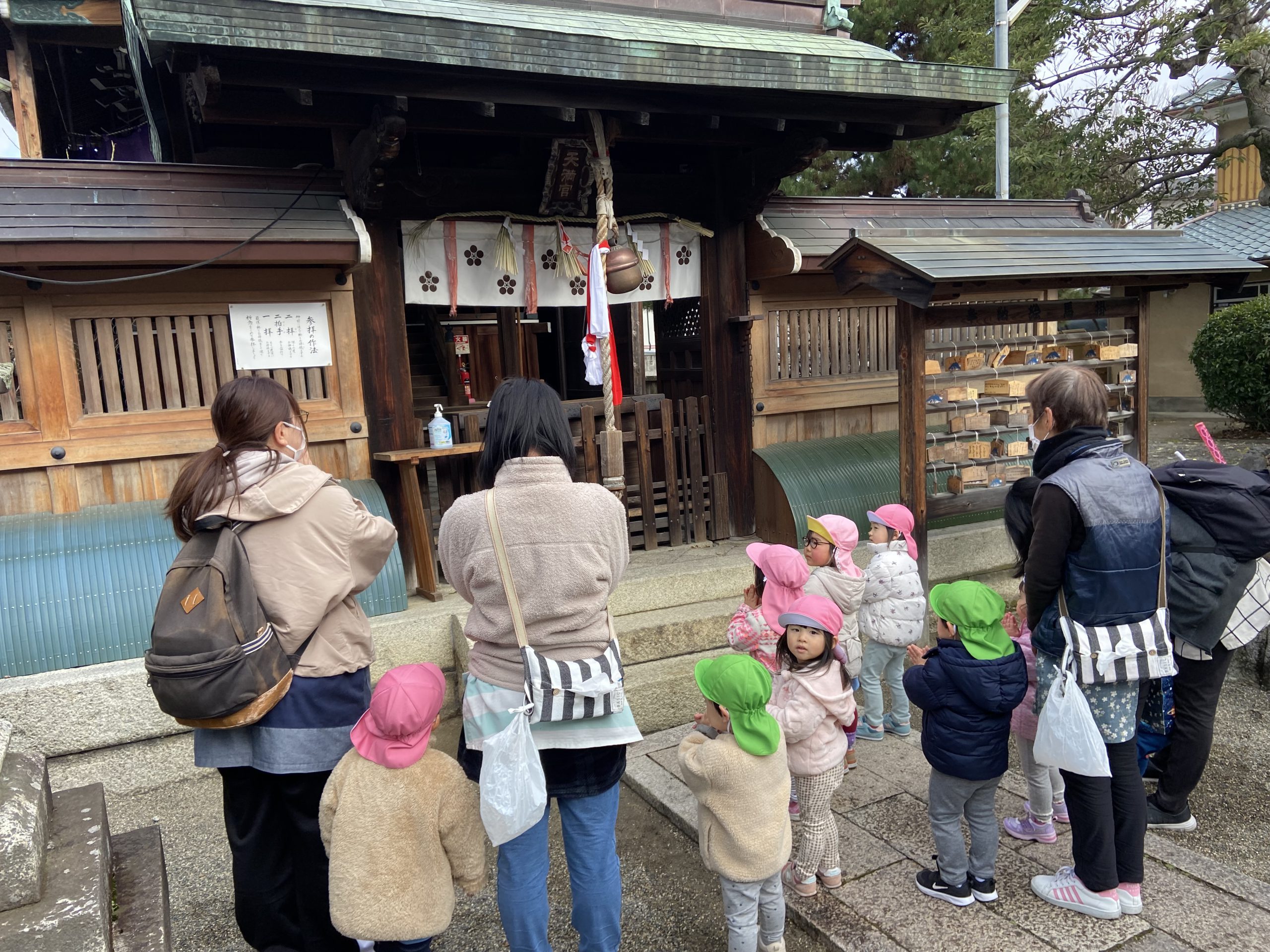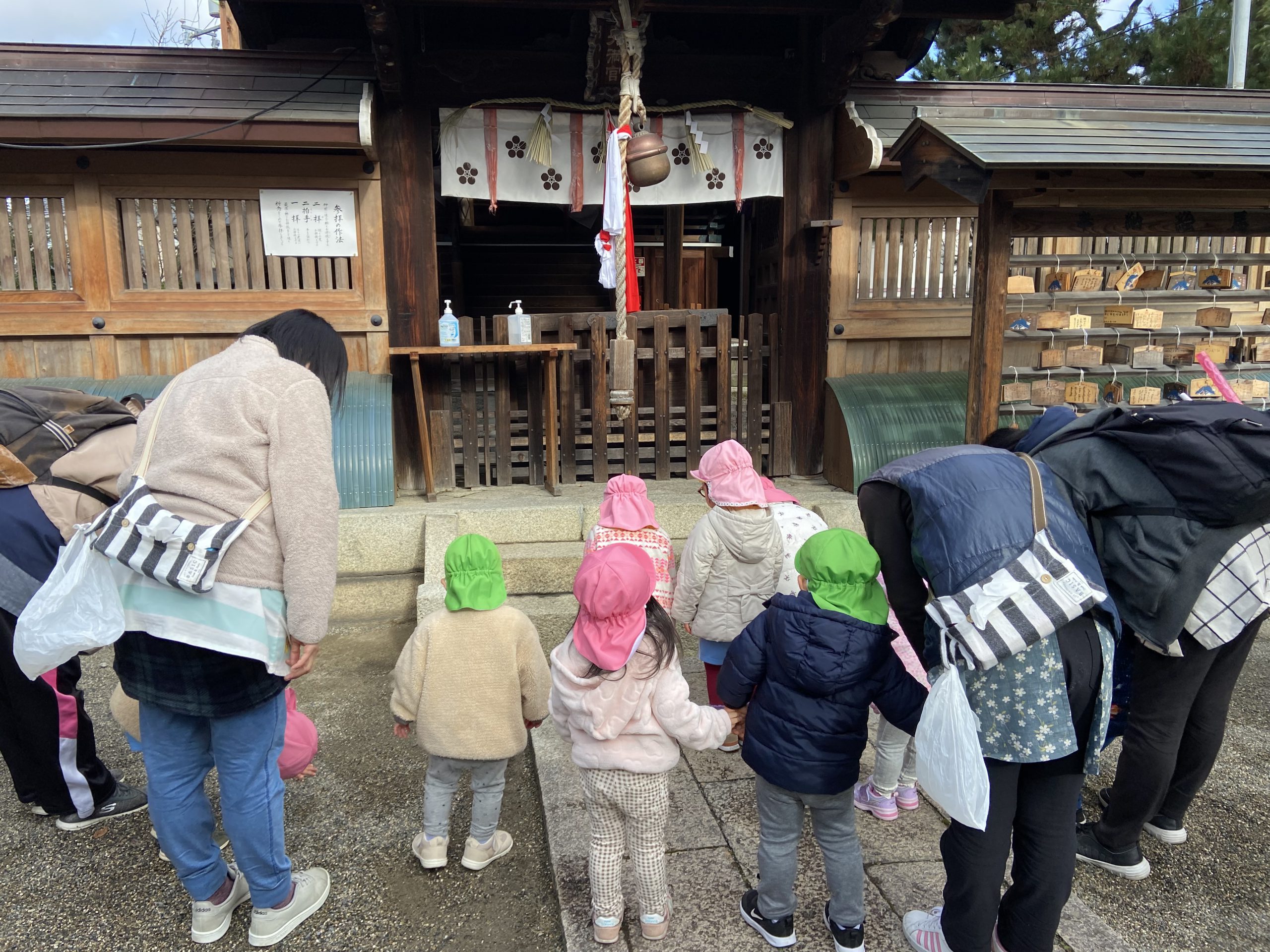 令和5年 スタート❕2023年1月5日(木) 今日から登園する子どもがたくさんいました♪ 賑やかに令和5年がスタートしました。 今日の一日の始まりは、日課活動からスタートしました🎶 その後、みんなでお餅つきごっこを楽しみました🎶 そして、手作り玩具のお餅を食べました🎶 そして、えんどう食料品店さんに年末に頂いたみかんのお礼と、新年の挨拶に行きました🎶 さぁ~ 天満宮へ初詣に行こう🎵 今年もよろしくお願いします。 « みんなで一緒に凧揚げ🎶 大掃除 »