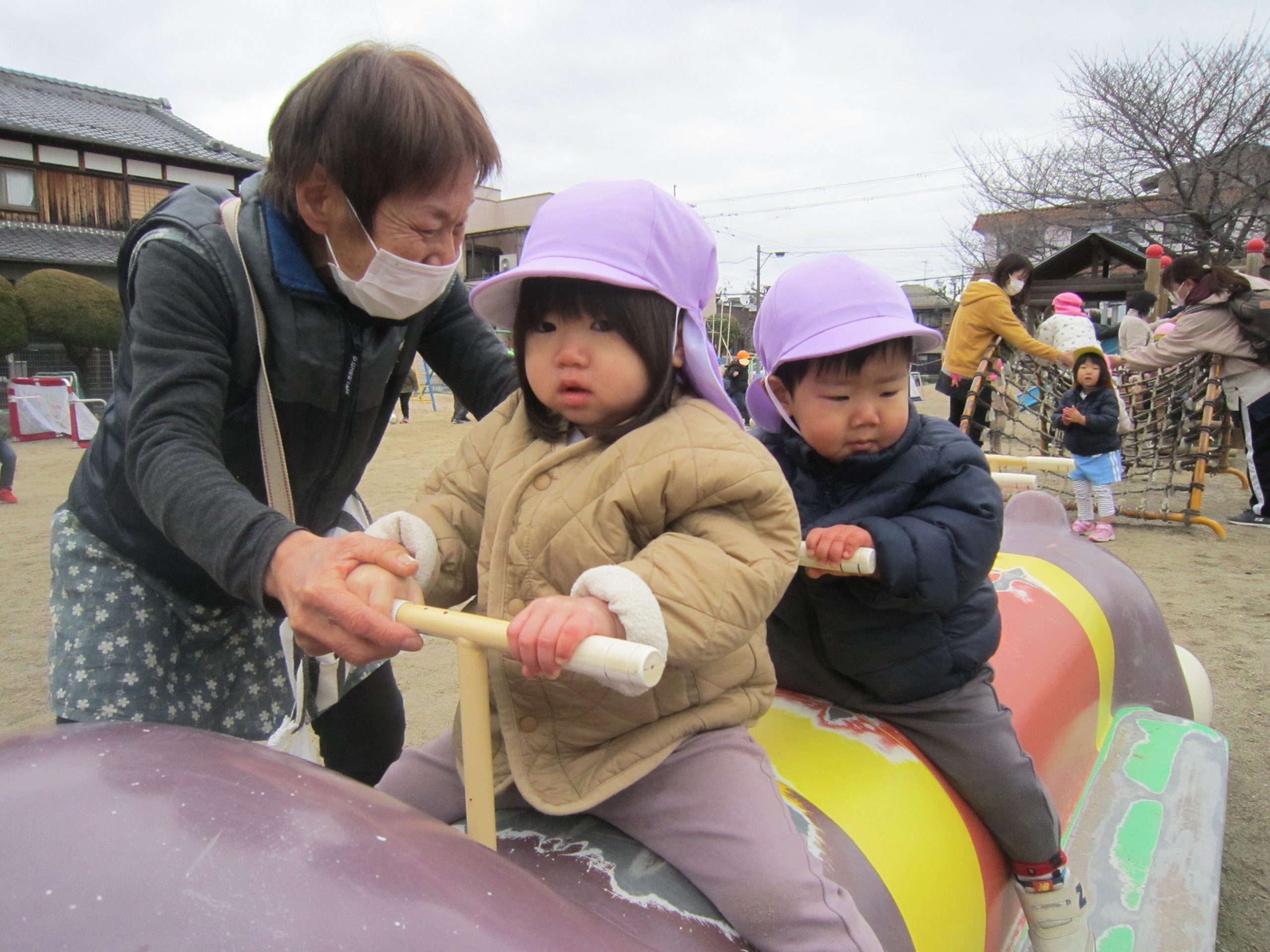 園庭開放🎵2023年1月17日(火) 今日は、吉身保育園の園庭開放に参加させていただきました🎶 子ども達は、寒さを忘れるぐらい元気いっぱいに遊んでいました🎵 久しぶりの園庭開放に大喜びでした🎵 来月の園庭開放も楽しみにしています♪ « 節分前の準備🎵 カブを植えたよ🎵 みんなで一緒に凧揚げ🎶 »