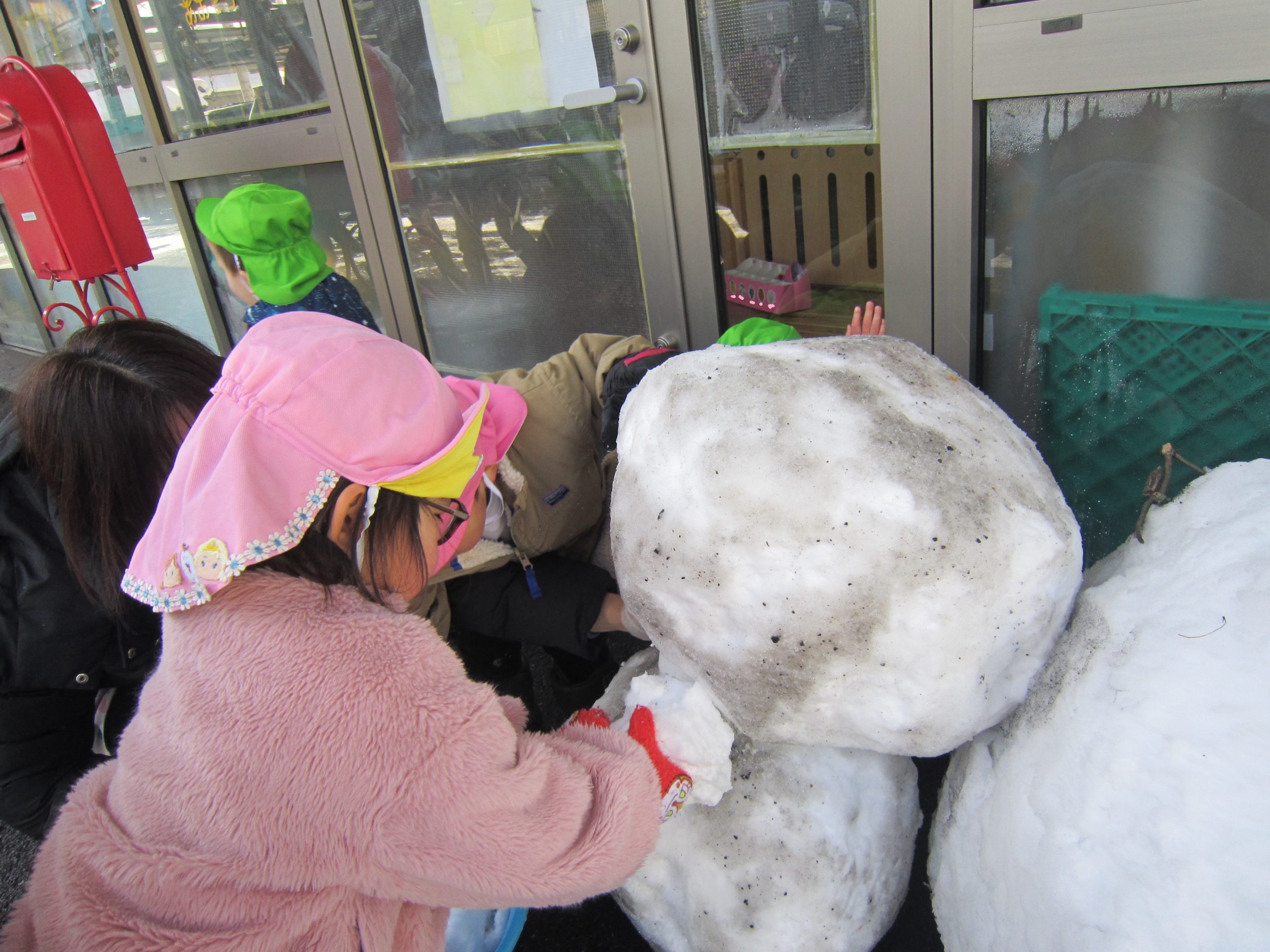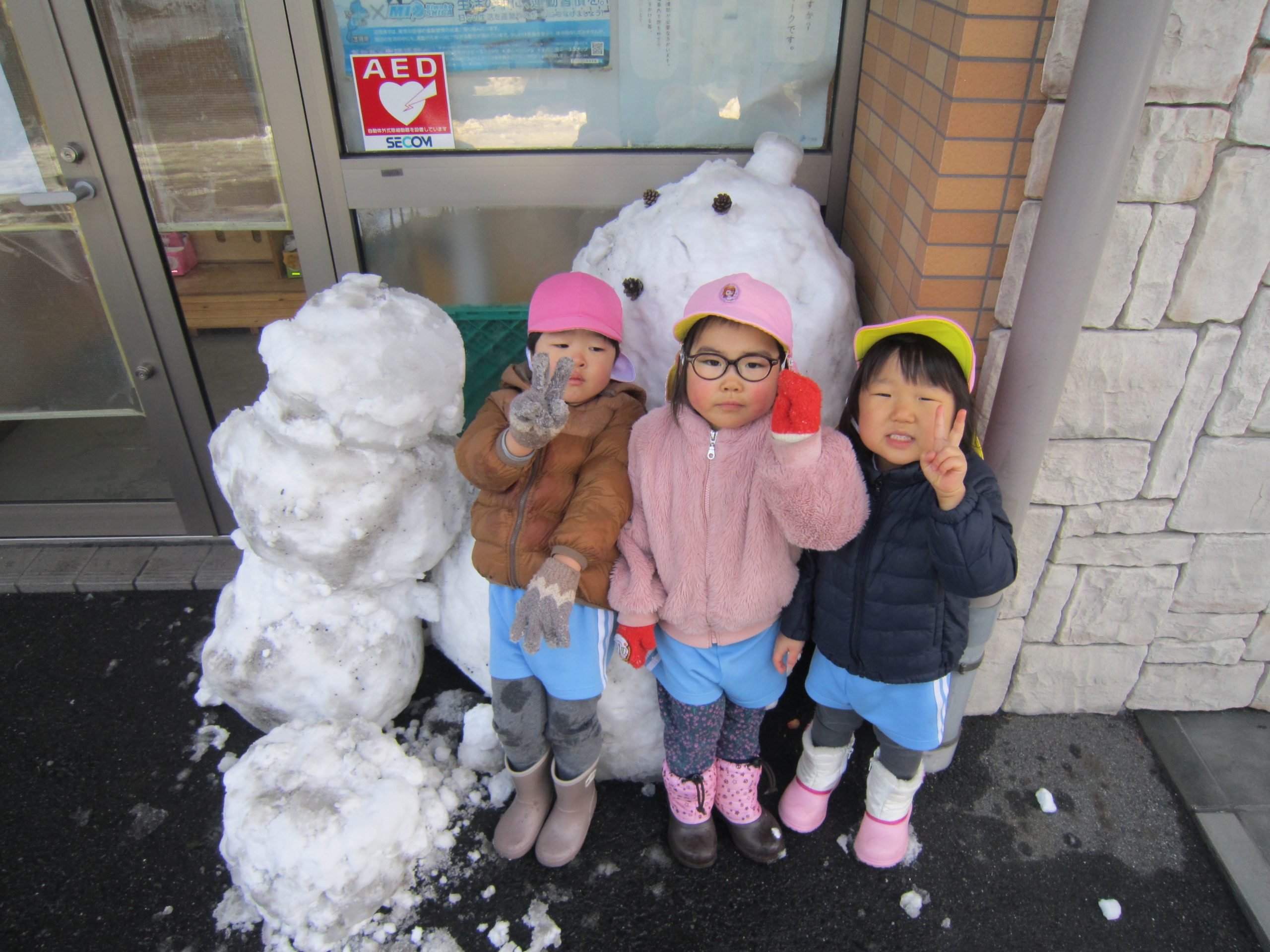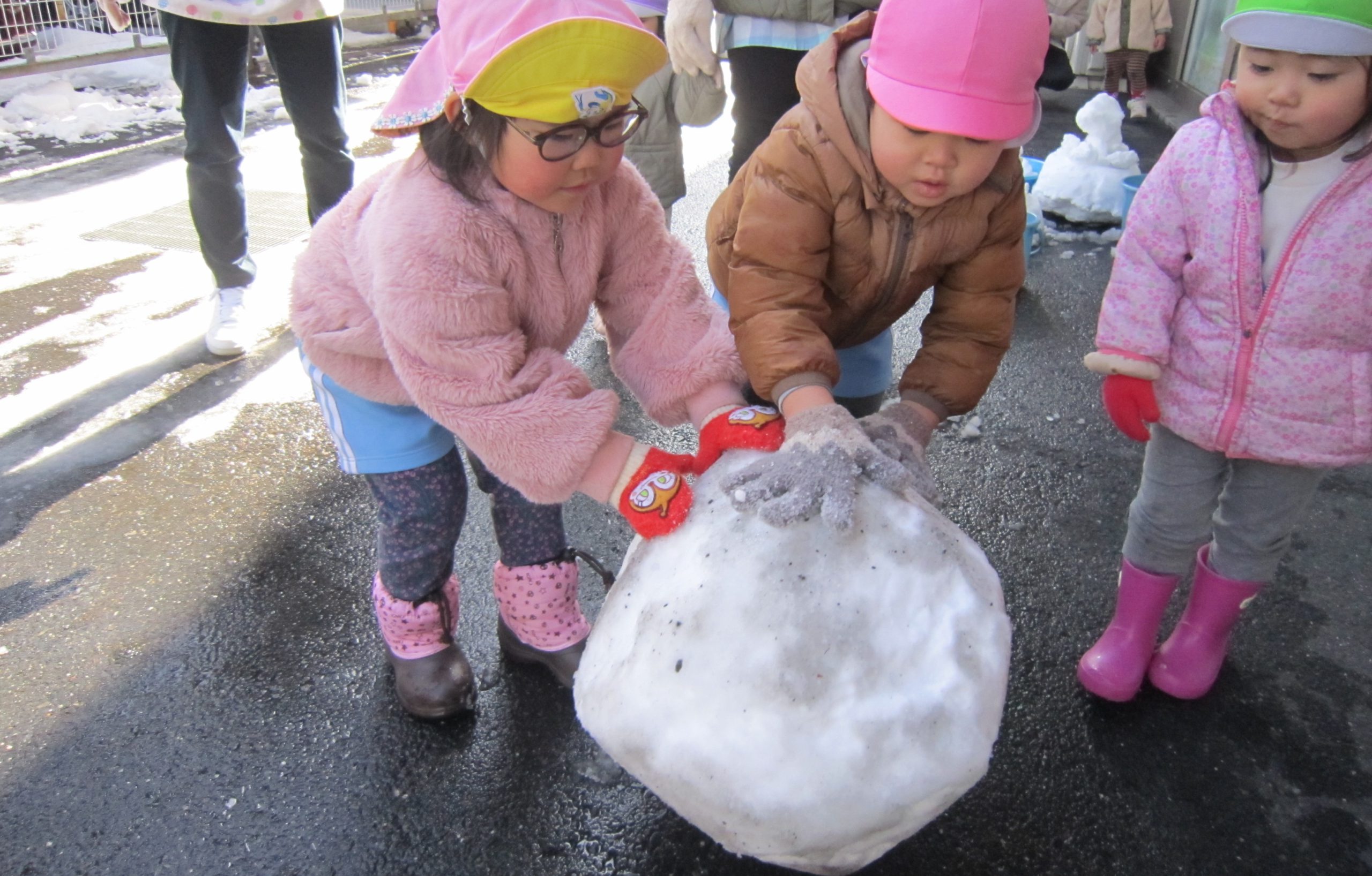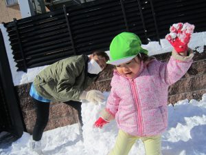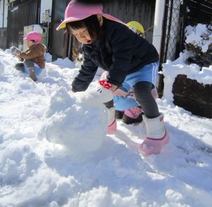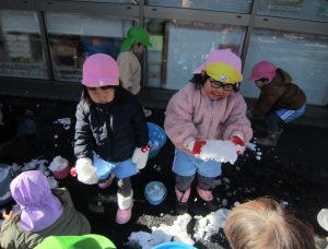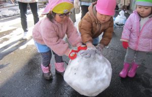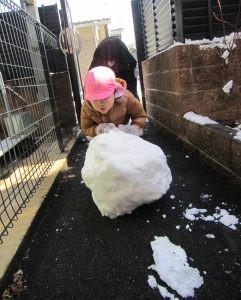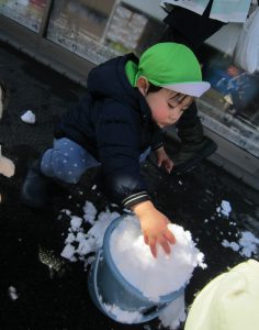 雪あそび🎵2023年1月26日(木) 今日は、雪で遊びました♪ 子ども達は、冷たい雪でもへっちゃら・・・ 大喜びで遊んでいました🎶 こぐま組は雪だるまを作りました🎶 さあ~雪だるまができたよ🎵 保育園まで転がして運ぶよ❕ 「よいしょ よいしょ」 雪だるまあと少しで完成するよ~🎵 雪だるまが完成しました♪ 冷たかったけど楽しかったね🎶 « 節分👹 節分前の準備🎵 カブを植えたよ🎵 »