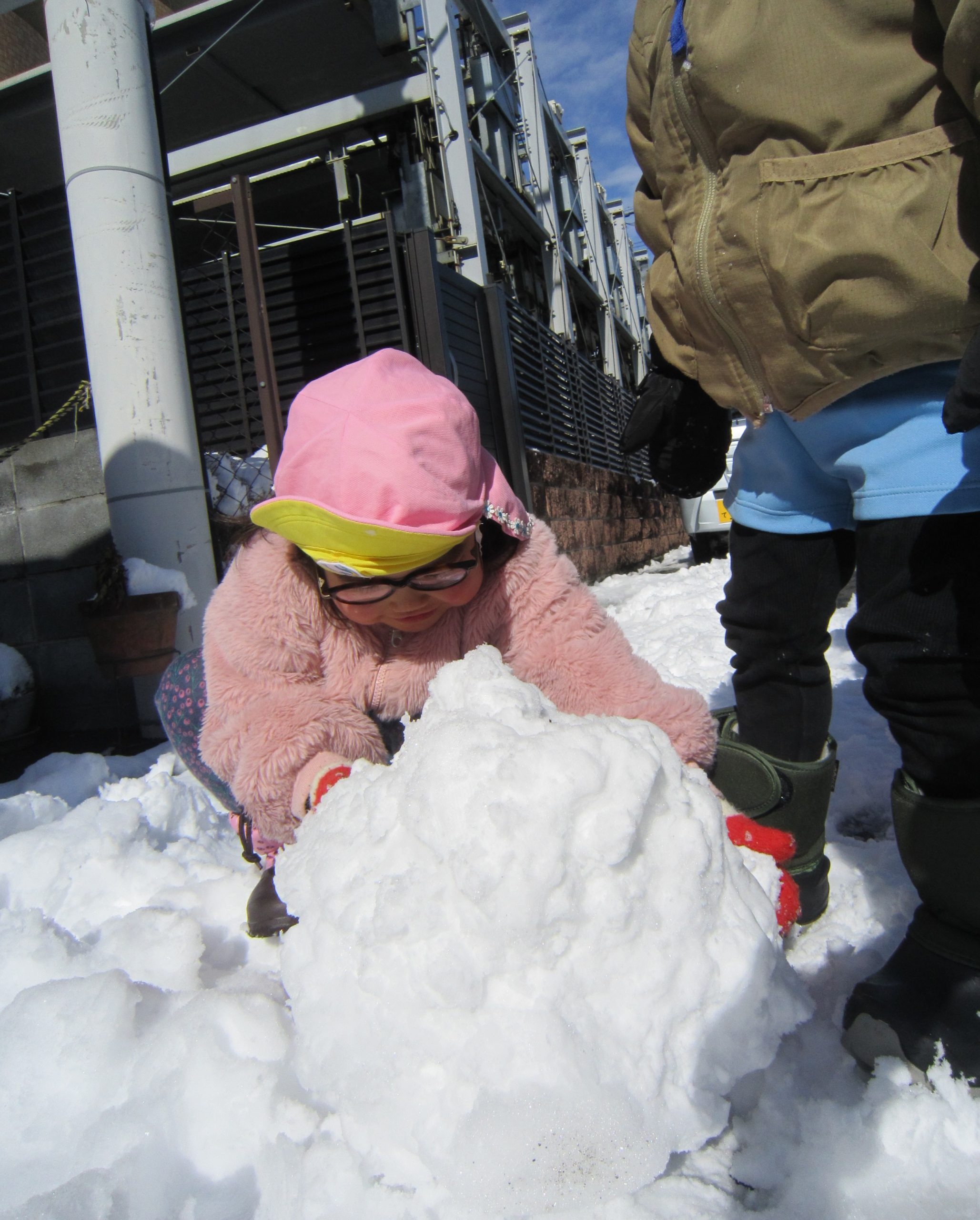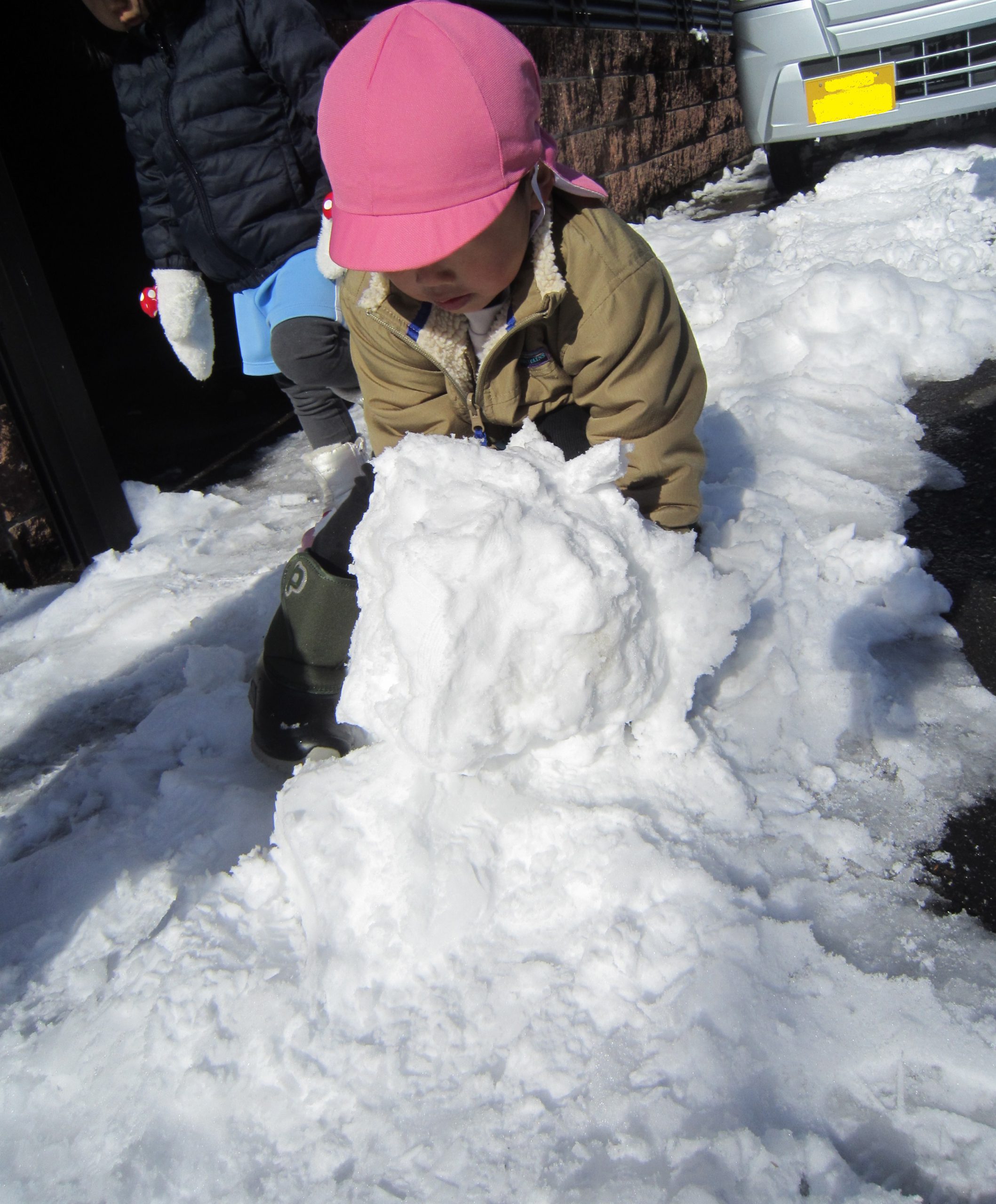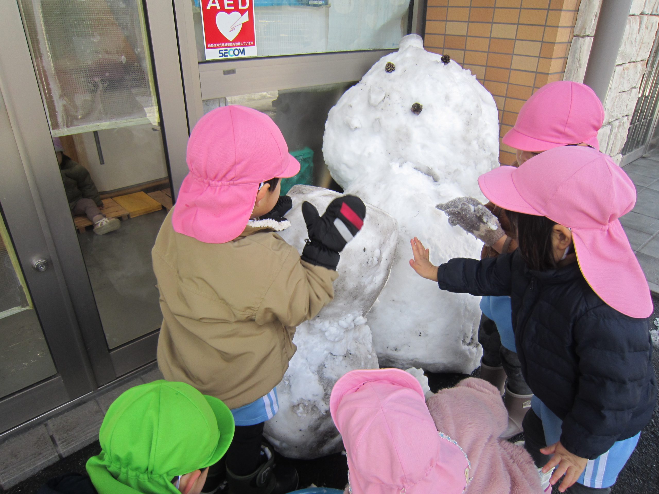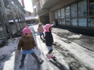 雪あそび🎵2023年1月26日(木) 今日は、雪で遊びました♪ 子ども達は、冷たい雪でもへっちゃら・・・ 大喜びで遊んでいました🎶 こぐま組は雪だるまを作りました🎶 さあ~雪だるまができたよ🎵 保育園まで転がして運ぶよ❕ 「よいしょ よいしょ」 雪だるまあと少しで完成するよ~🎵 雪だるまが完成しました♪ 冷たかったけど楽しかったね🎶 « 節分👹 節分前の準備🎵 カブを植えたよ🎵 »