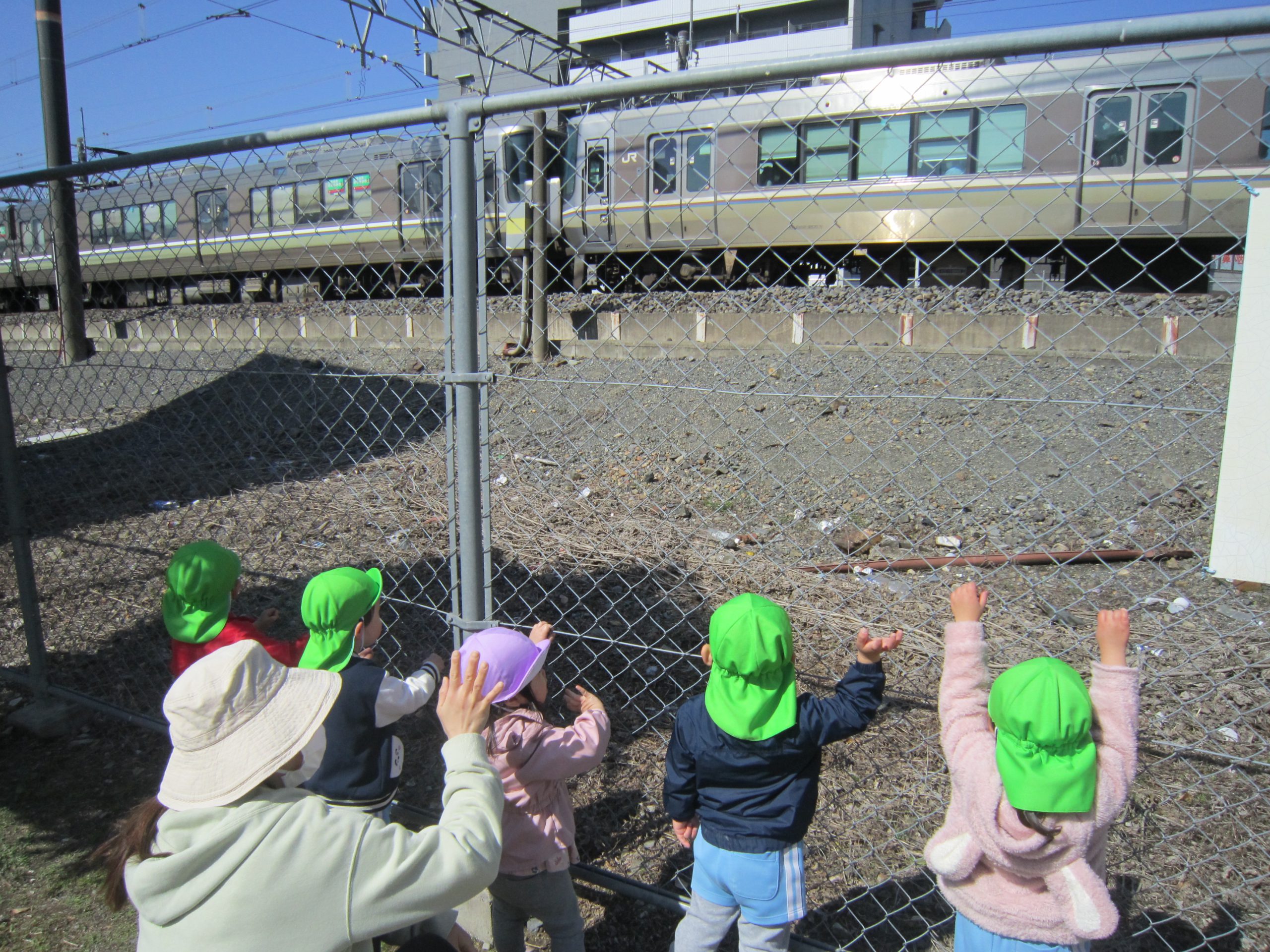 電車に乗ったよ🚉2023年3月14日(火) 今日は、みんなで電車に乗って南草津駅まで行きました🎵 駅に着くと、ひよこ組とうさぎ組は野路小林児童遊園へ行って遊びました♬ たくさん遊んだ後は、お茶休憩🎵 こぐま組は、はさま公園で遊びました🎵 はさま公園の前で「はいチーズ♪」 楽しい思い出がまた一つ増えました🎶 残念ながら電車の中で座ることができませんでしたが、子ども達は電車乗って遊びに行く楽しさを味わうことができました🎶 お家に帰ってから今日の事を聞いてみてください・・・🎵 « 今年度最後の体操教室🎶 バス遠足🚌 »