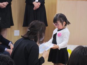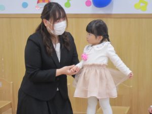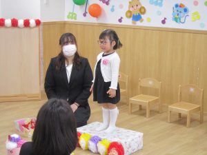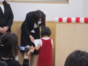 子ども達だけではなく保護者の方も色々な葛藤や思いをもって、もりやまナーサリーに通っていただいていた事を改めて感じました。至らない点は多々あったと思いますが、これからも子ども達や保護者の方に安心して預けていただけるように笑顔いっぱいで保育を行っていきたいと思います。