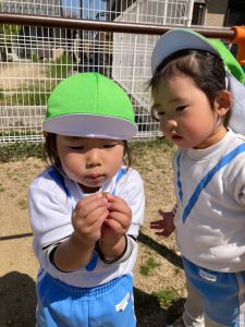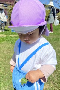 令和5年度 スタート🎶2023年4月10日(月) 慣らし保育も終わり、今日から通常保育が始まりました🎵 新入園児さんは、笑顔で過ごす時間も増え園生活に少しずつ慣れてきました🎶 今日は、お散歩に出かけました🎵 うさぎ組はうの家の芝生で遊びました🎶 たくさん歩いてたくさん遊んで楽しかったね🎵 こぐま組は、百々羅公園へ行って遊びました🎶 春は、天気も良く過ごしやすい季節です♪ 子ども達と一緒に散歩に出かけて、たくさん体を動かすと共に春の自然物に触れていきたいと思います🎵 « 4月の大型壁面🎏 ㊗入園式🎶 »