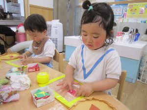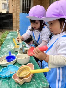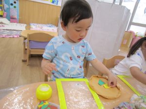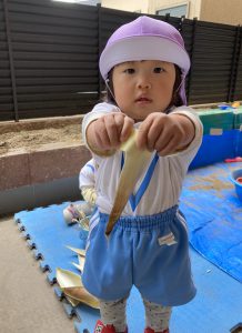 うさぎ組 砂遊び🎵 こぐま組 4月の制作🎶2023年4月25日(火) 今日は、雨が降っていたのでうさぎ組はエントランスで砂遊びを楽しみました🎵 タケノコの皮も触ってみました♪ ビリビリと皮を破って楽しんでいました♬ こぐま組の4月の制作はチョウチョとピザそして、5月のお部屋の壁面制作をしました🎶 チョウチョは、作った後みとつ公園へ持って行きました(14日)🎵 ピザ作り(21日)🎶 美味しいピザが完成しました🎶 チョウチョもピザもお家に持って帰りました♪ 5月はどんな制作をするのか楽しみ~🎵 « 下井田公園 プリント こぐま組 4月の大型壁面🎏 »