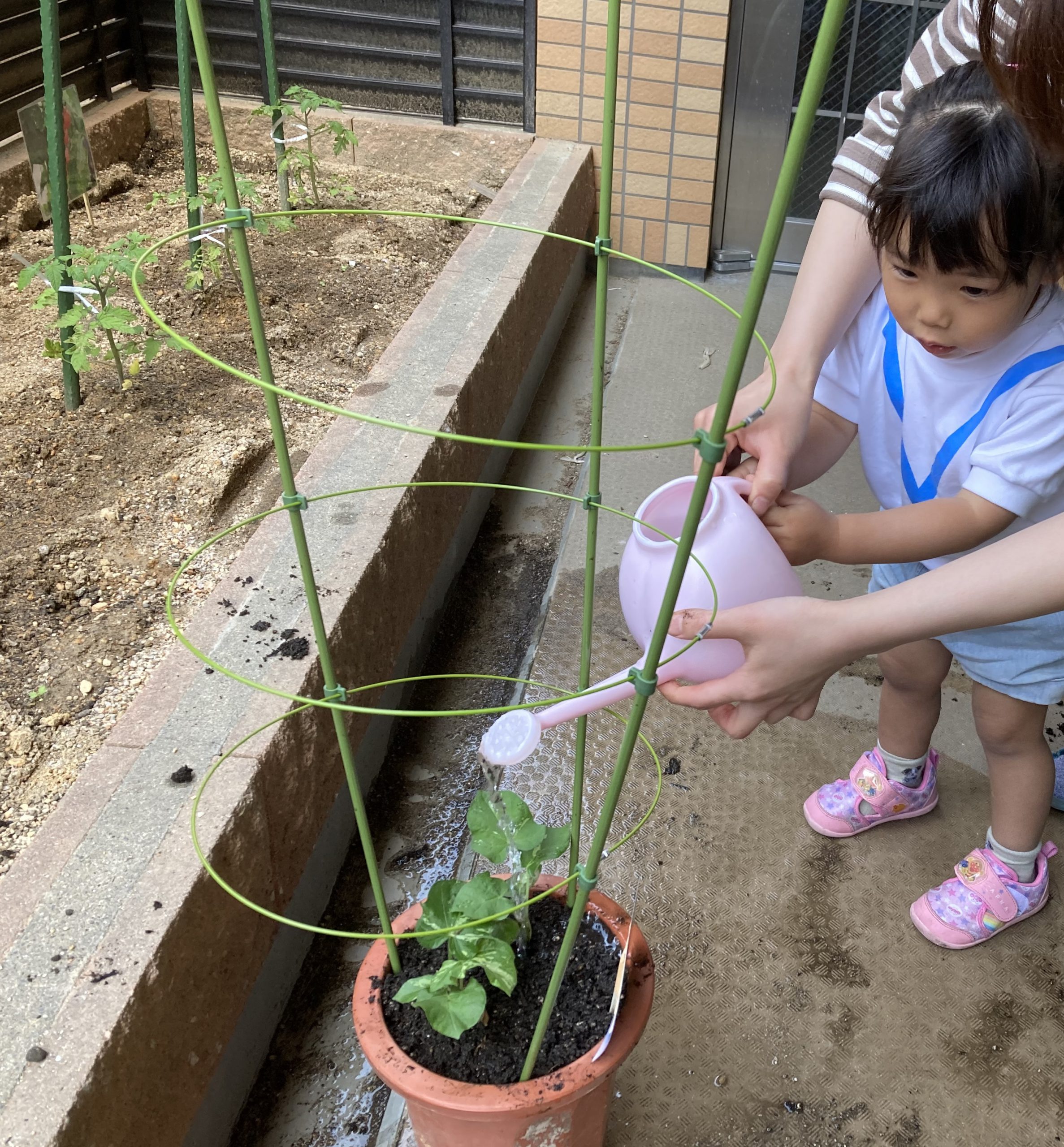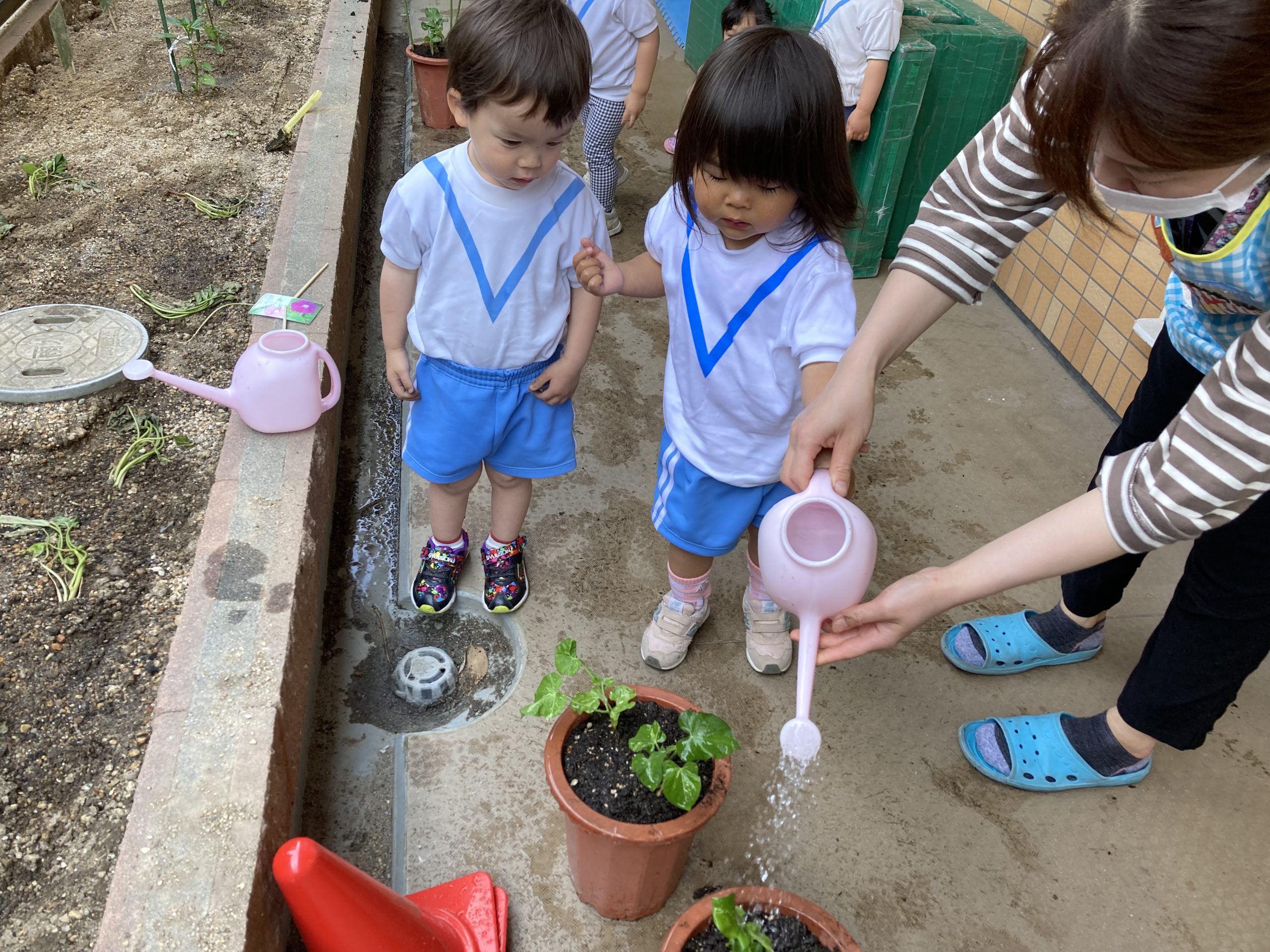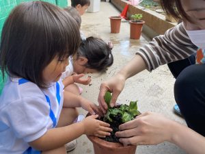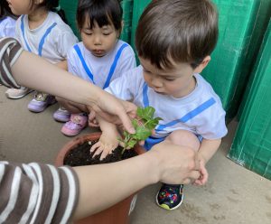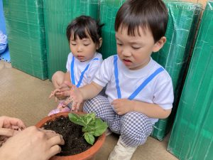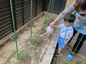 アサガオの苗植え🎵 こぐま組2023年5月12日(金) こぐま組は、今日アサガオの苗植えをしました🎶 アサガオの苗植えスタート❕ 苗植え完了❕ 「何色の花が咲くのかなぁ・・・?」と、楽しみにしている子ども達でした🎵 その後、アサガオと野菜に水をあげました🎶 これから毎日水やりをして、大切に育てていきたいと思います🎵 « 園庭開放🎶 今年度初めての体操教室♪ »