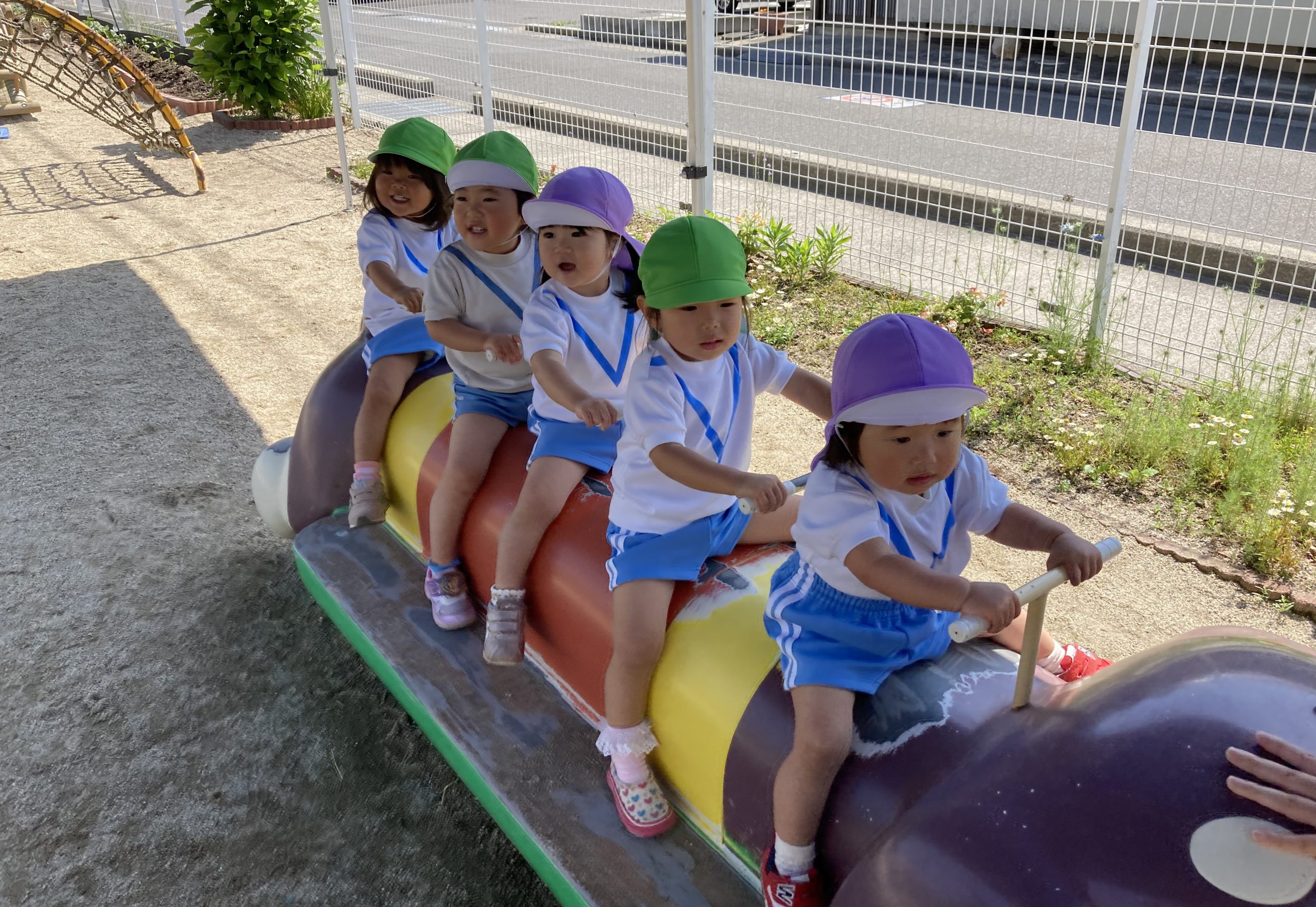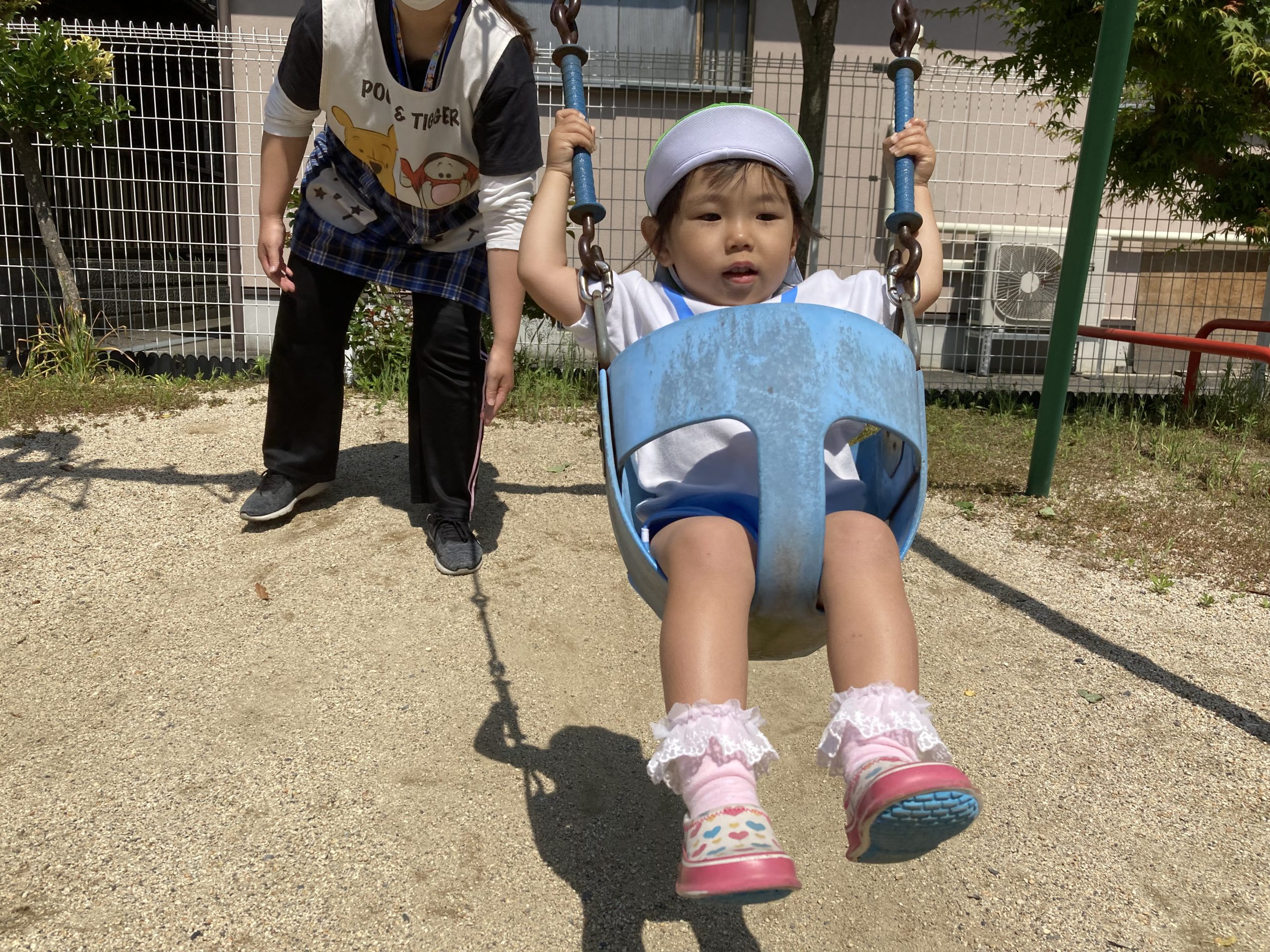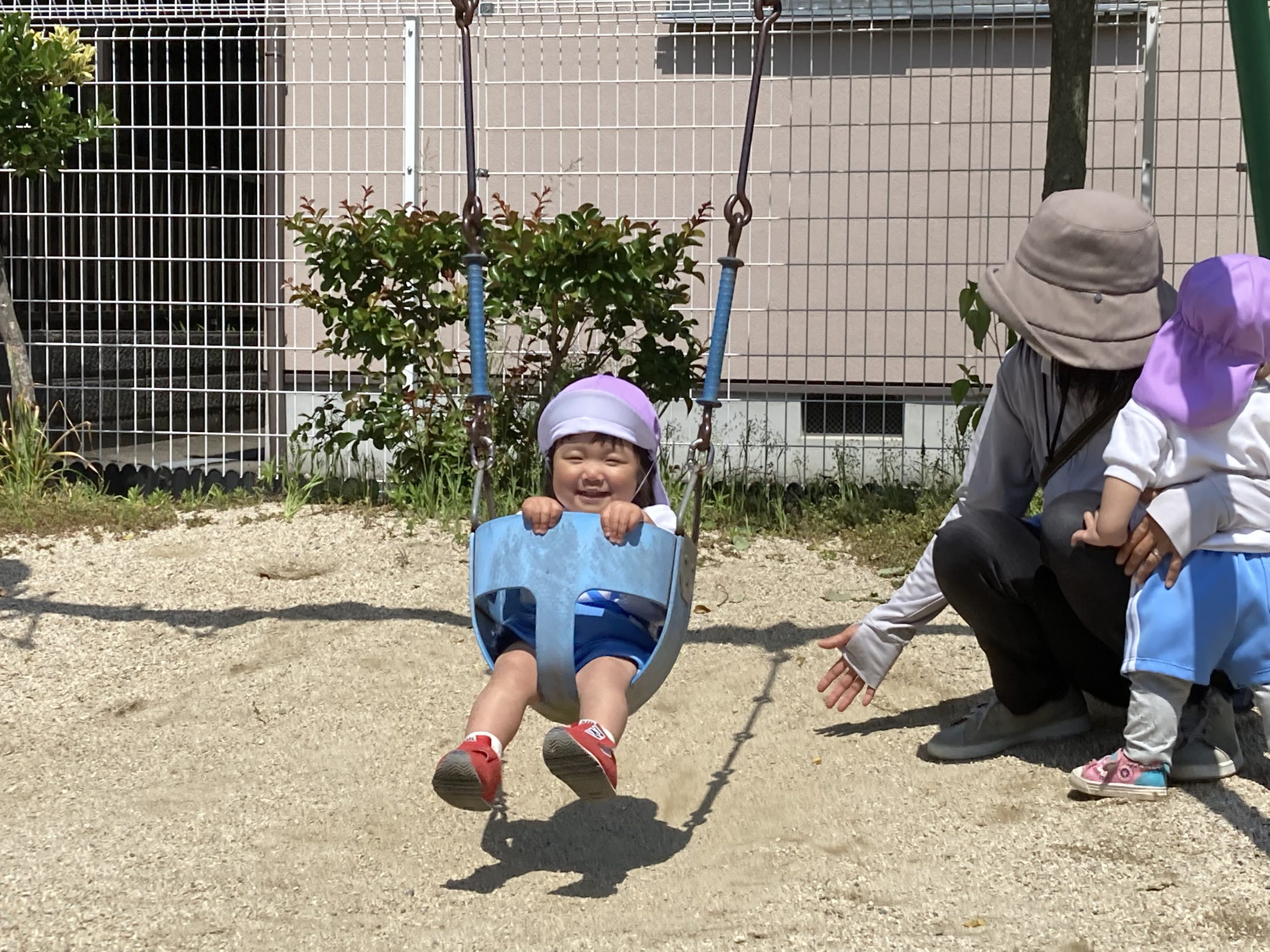 園庭開放🎶2023年5月16日(火) 今日は吉身保育園の園庭開放に参加させていただきました。 好きな遊具を見つけると大喜びで遊びだしました🎶 暑かったけど楽しかったね🎵 来月の園庭開放も楽しみにしています🎶 « 保育者と一緒にふれあい遊び🎵 アサガオの苗植え🎵 こぐま組 »
