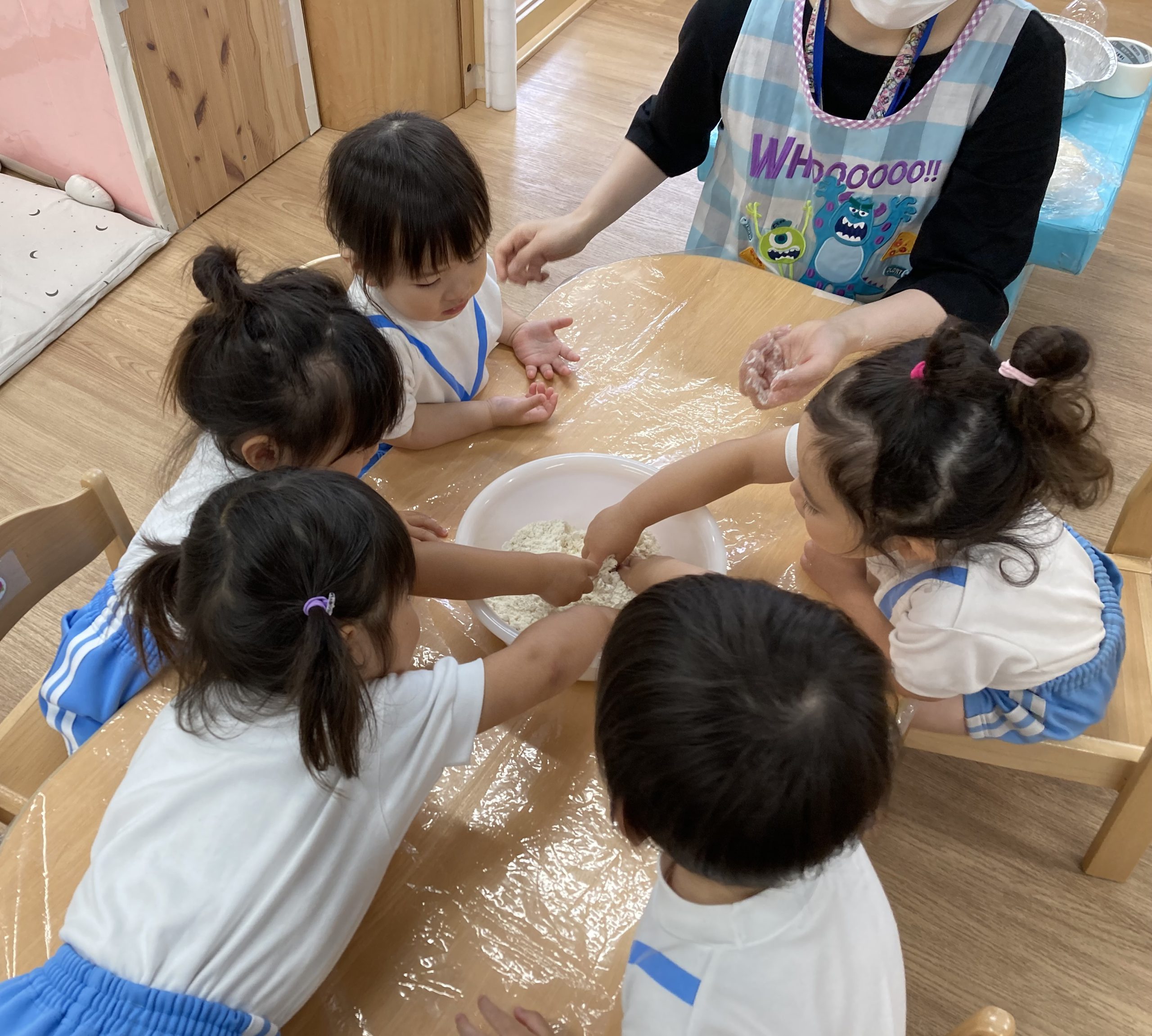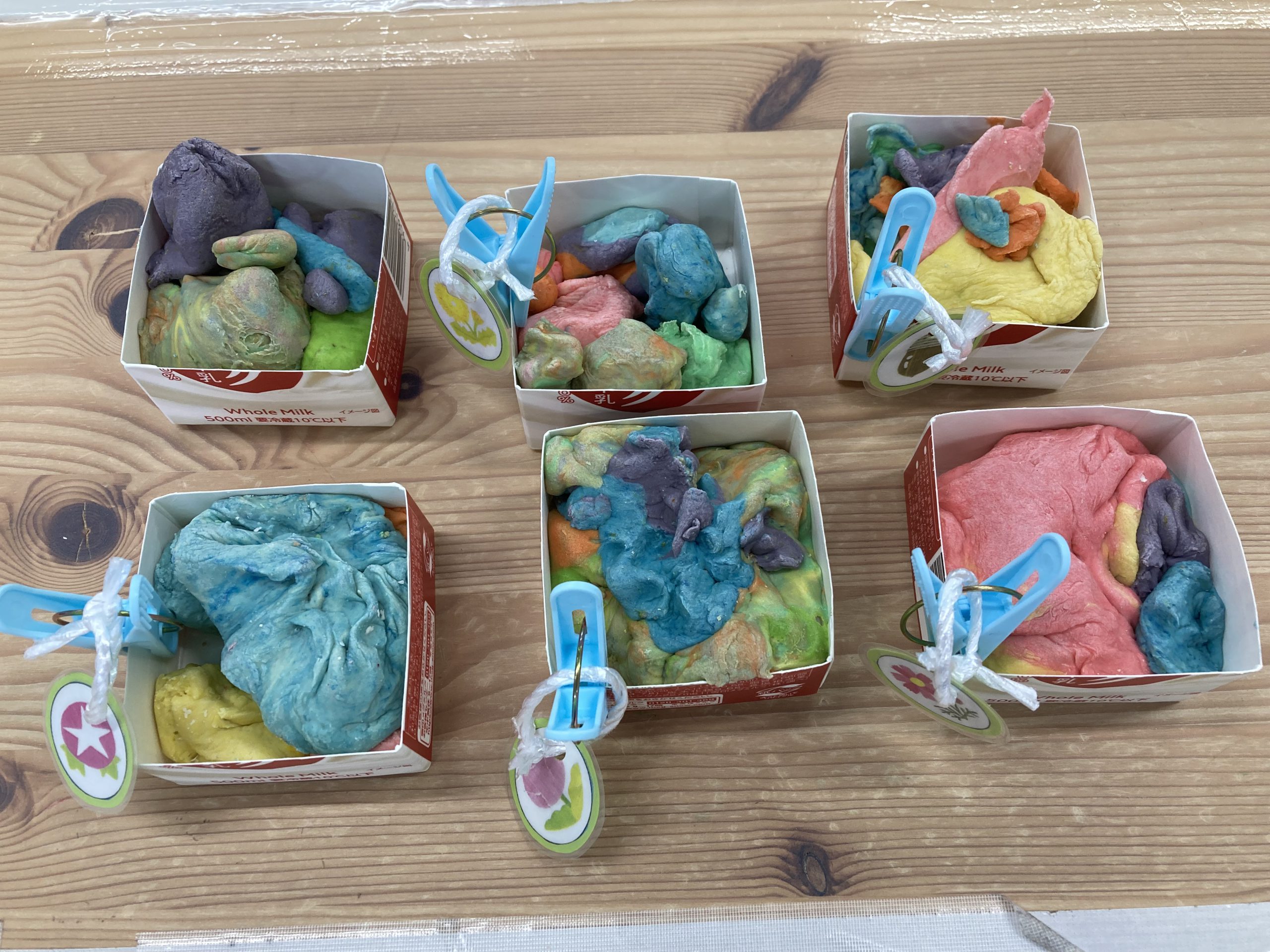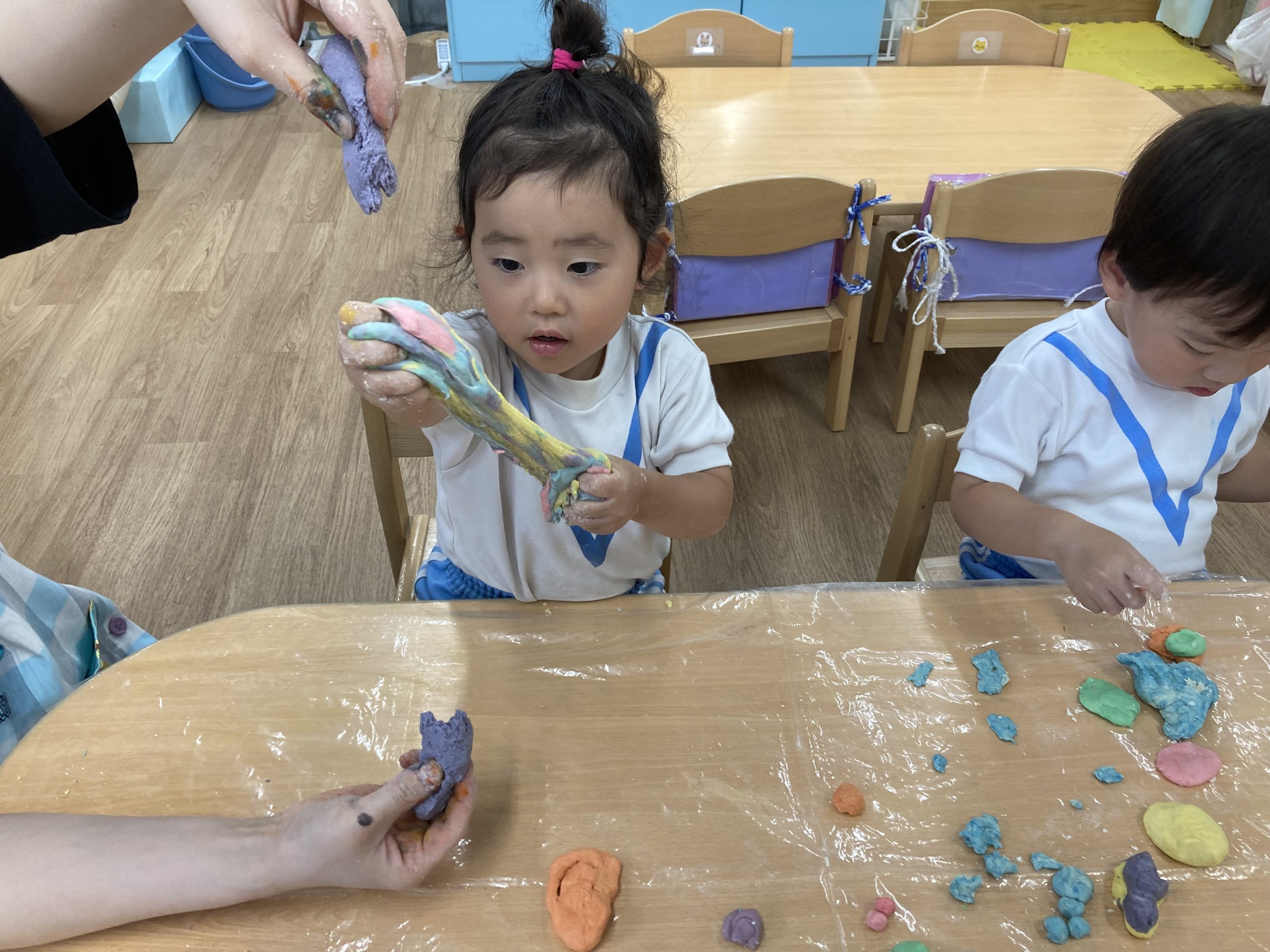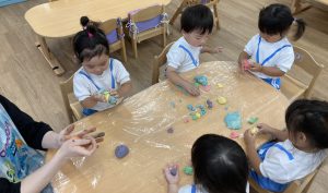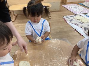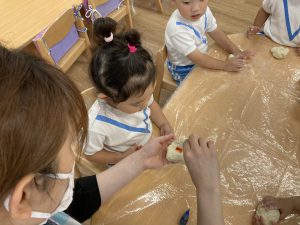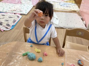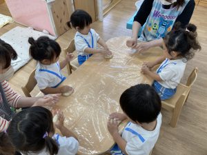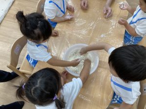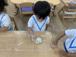 小麦粉粘土遊び🎵2023年6月16日(金) 今日のこぐま組は、小麦粉粘土で遊びました🎶 まずは子ども達と一緒に小麦粉粘土を作りました🎵 小麦粉を触って 次に塩と水を入れて混ぜるよ~ 油を入れて完成❕ 何を作ろうかな・・・? 今日は好きな色を混ぜよ~ どんどん混ぜていこう~ 色々な色が完成したね🎶 小麦粉でごちそうを作ったり、色の変化を楽しんだりと楽しみ方は様々でした🎶 本日こぐま組は、小麦粉粘土を持ち帰ります♪ お家でも一緒に楽しんでください🎵 « ピーマンの収獲🎶 新聞紙遊び🎵 »