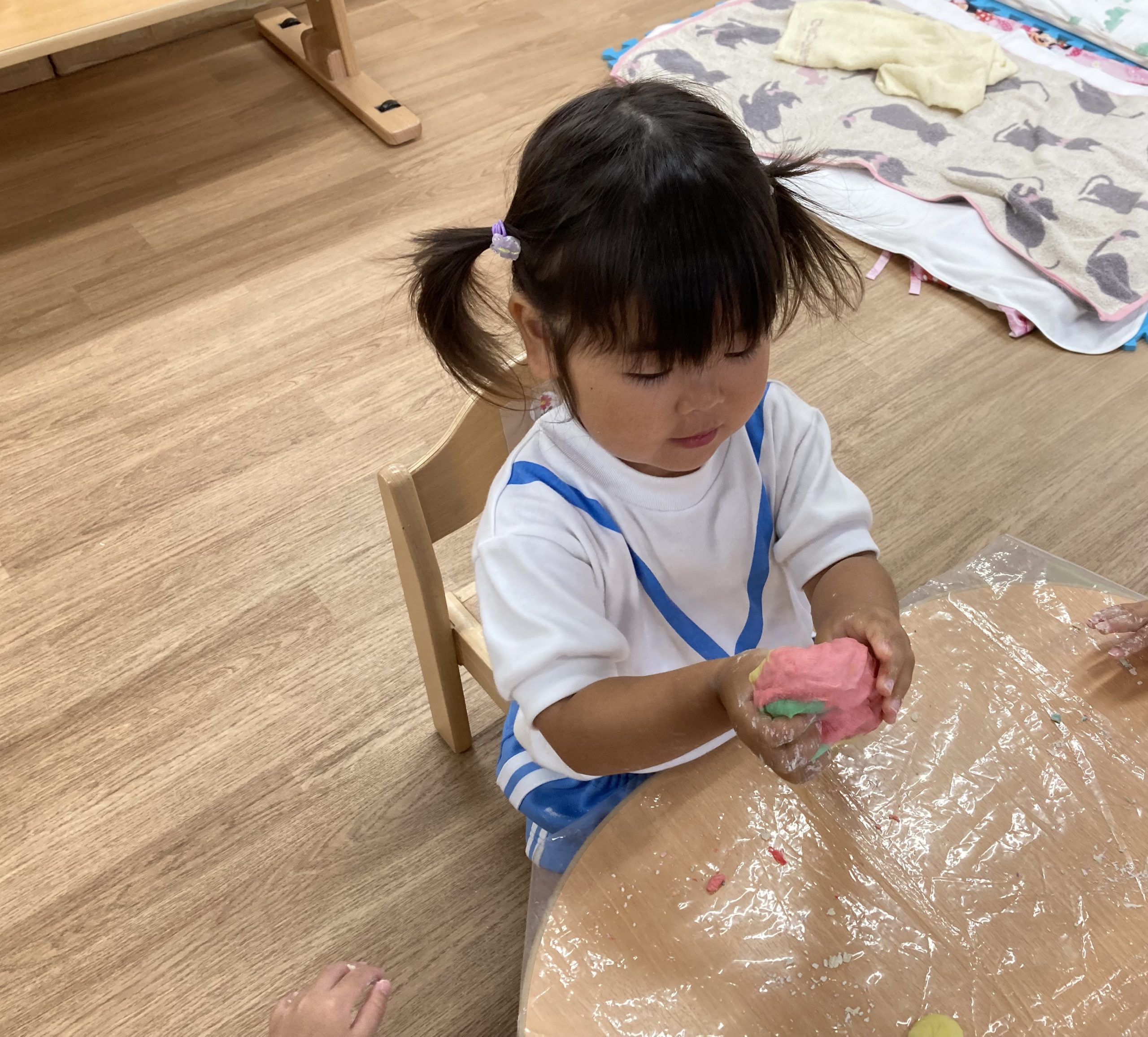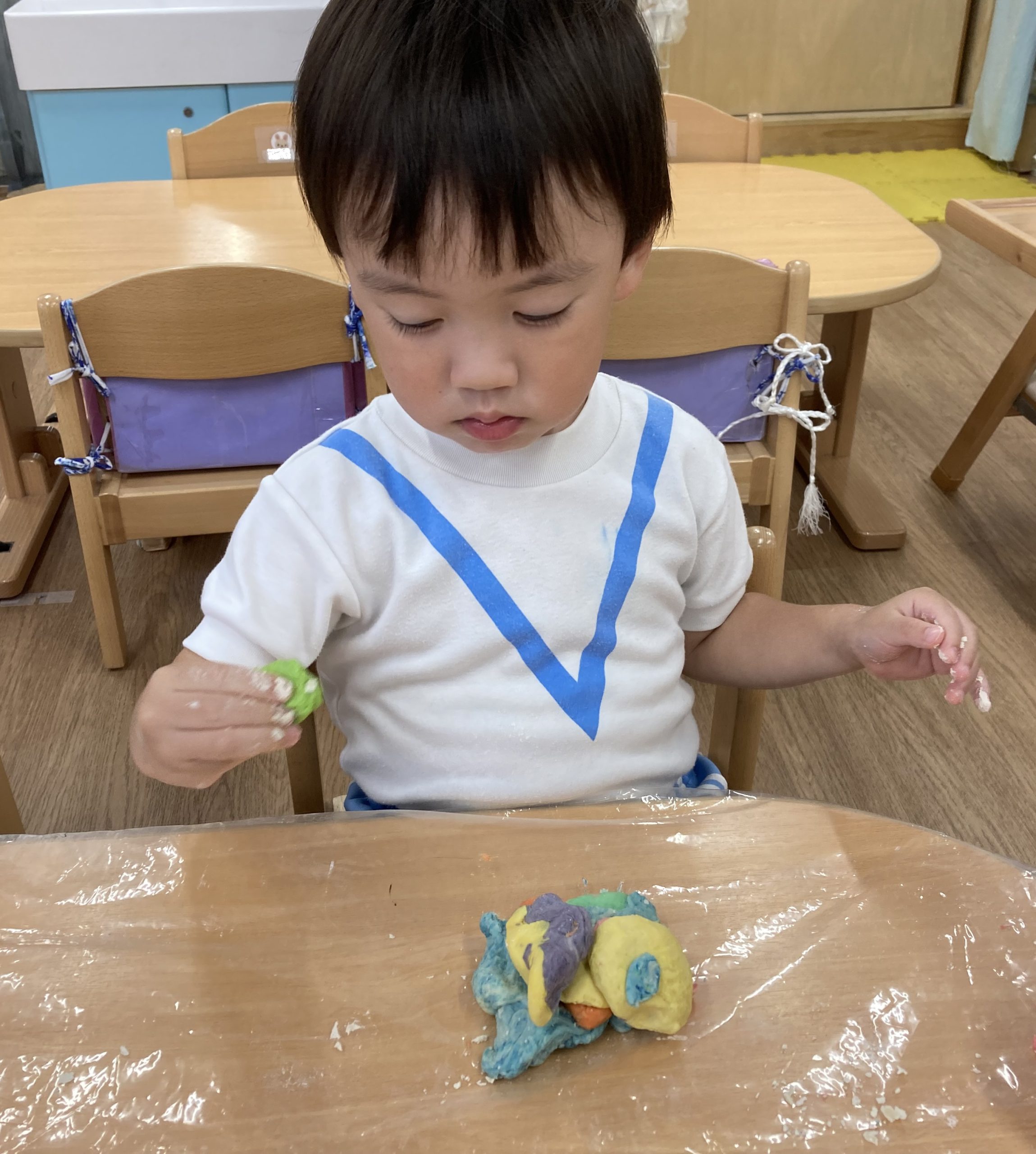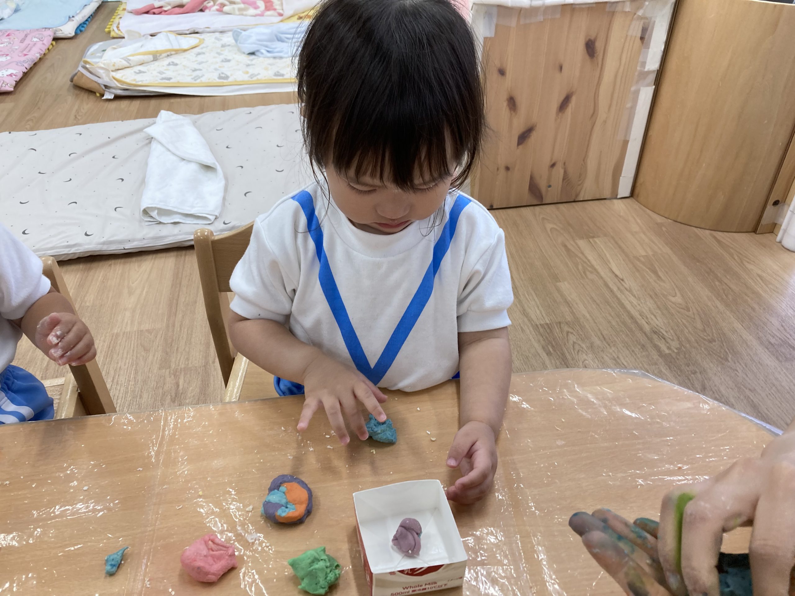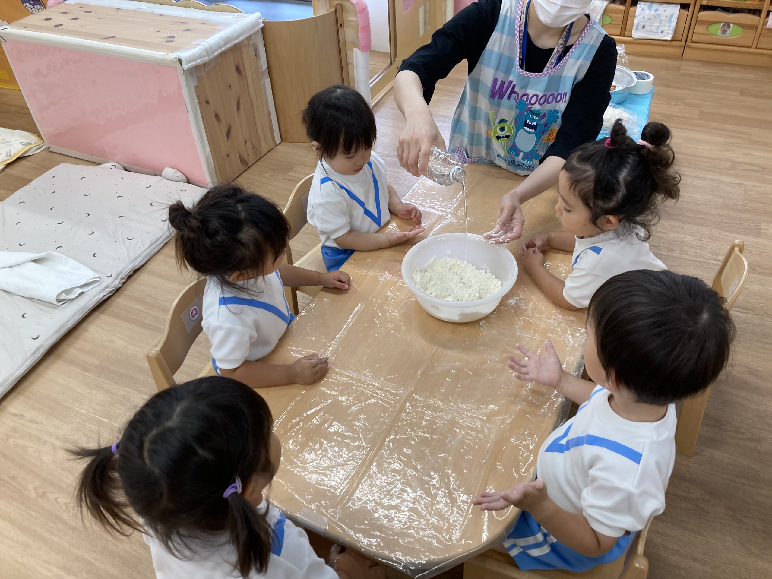小麦粉粘土遊び🎵2023年6月16日(金) 今日のこぐま組は、小麦粉粘土で遊びました🎶 まずは子ども達と一緒に小麦粉粘土を作りました🎵 小麦粉を触って 次に塩と水を入れて混ぜるよ~ 油を入れて完成❕ 何を作ろうかな・・・? 今日は好きな色を混ぜよ~ どんどん混ぜていこう~ 色々な色が完成したね🎶 小麦粉でごちそうを作ったり、色の変化を楽しんだりと楽しみ方は様々でした🎶 本日こぐま組は、小麦粉粘土を持ち帰ります♪ お家でも一緒に楽しんでください🎵 « ピーマンの収獲🎶 新聞紙遊び🎵 »