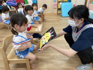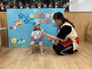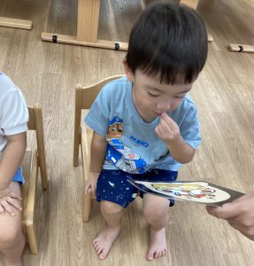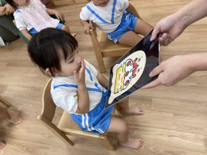 みんなから見られて少し恥ずかしい気持ちもありましたが、保育者からの質問にしっかりと答えていました🎵