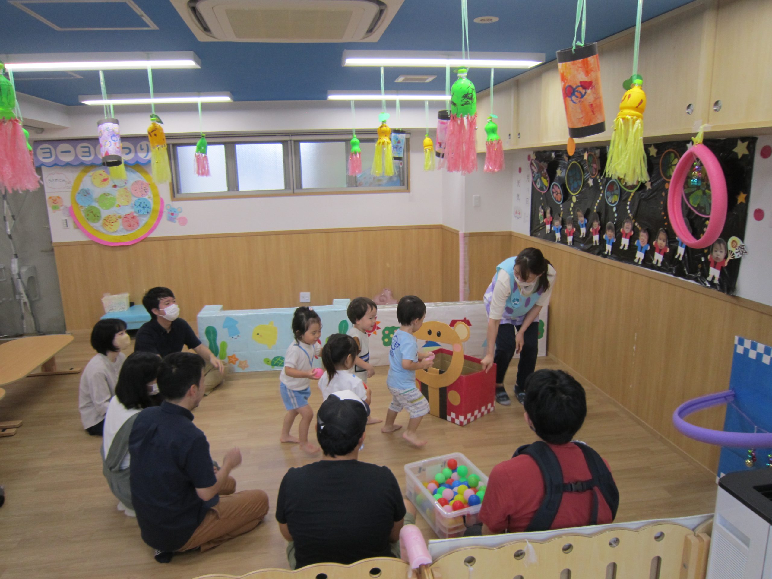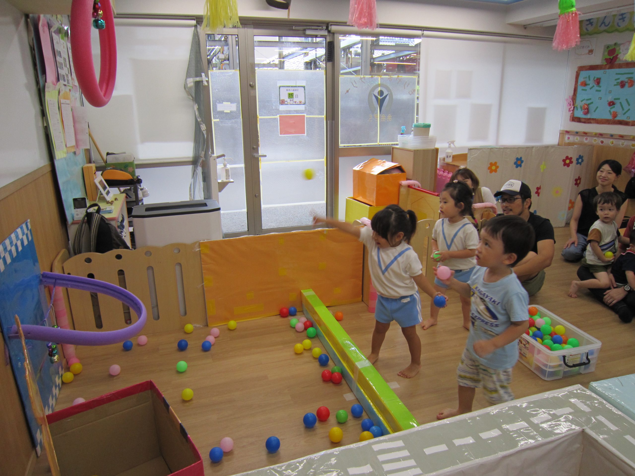 初めにスーパーボールすくいを楽しんだ後、カラーボールで遊びました♬