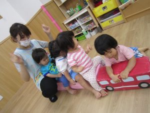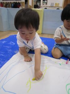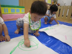 お絵描き2020年9月25日(金) 今日のひよこ・うさぎ組は大きな模造紙にお絵描きとシール貼りをしました!! 終わった後は、バスに乗って体を動かしました。 『ばすごっこ』の歌に合わせてノリノリの子ども達♪ よいっしょ!よいっしょ! 終点で~す! 楽しかったね! « おおきくなあれ~!! 制作 »