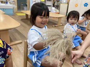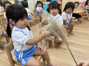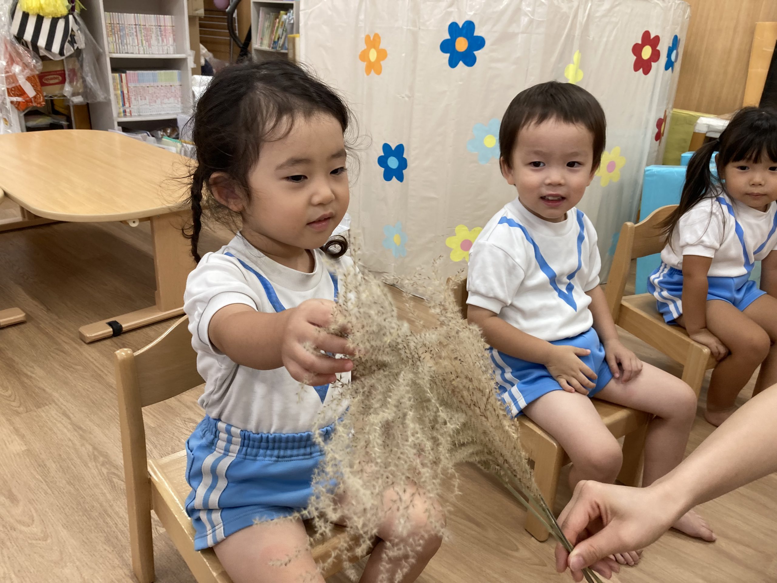 十五夜🎑2023年9月29日(金) 今日は十五夜です。 もりやまナーサリーでは、十五夜の話を聞いてから“おつきさまこんばんは”のパネルシアターをみました🎵 そして、ススキに触れてみました♬ 今夜は十五夜です🎶 お子さんと一緒にお月様を見るのもいいかもしれませんね🎶 その後、うさぎ組とこぐま組は下井田公園へ行きました♪ たくさん体を動かして遊んだね♬ 楽しかったね🎶 « ふれあい公園🎶 寒天遊び🎶 こぐま組 »
