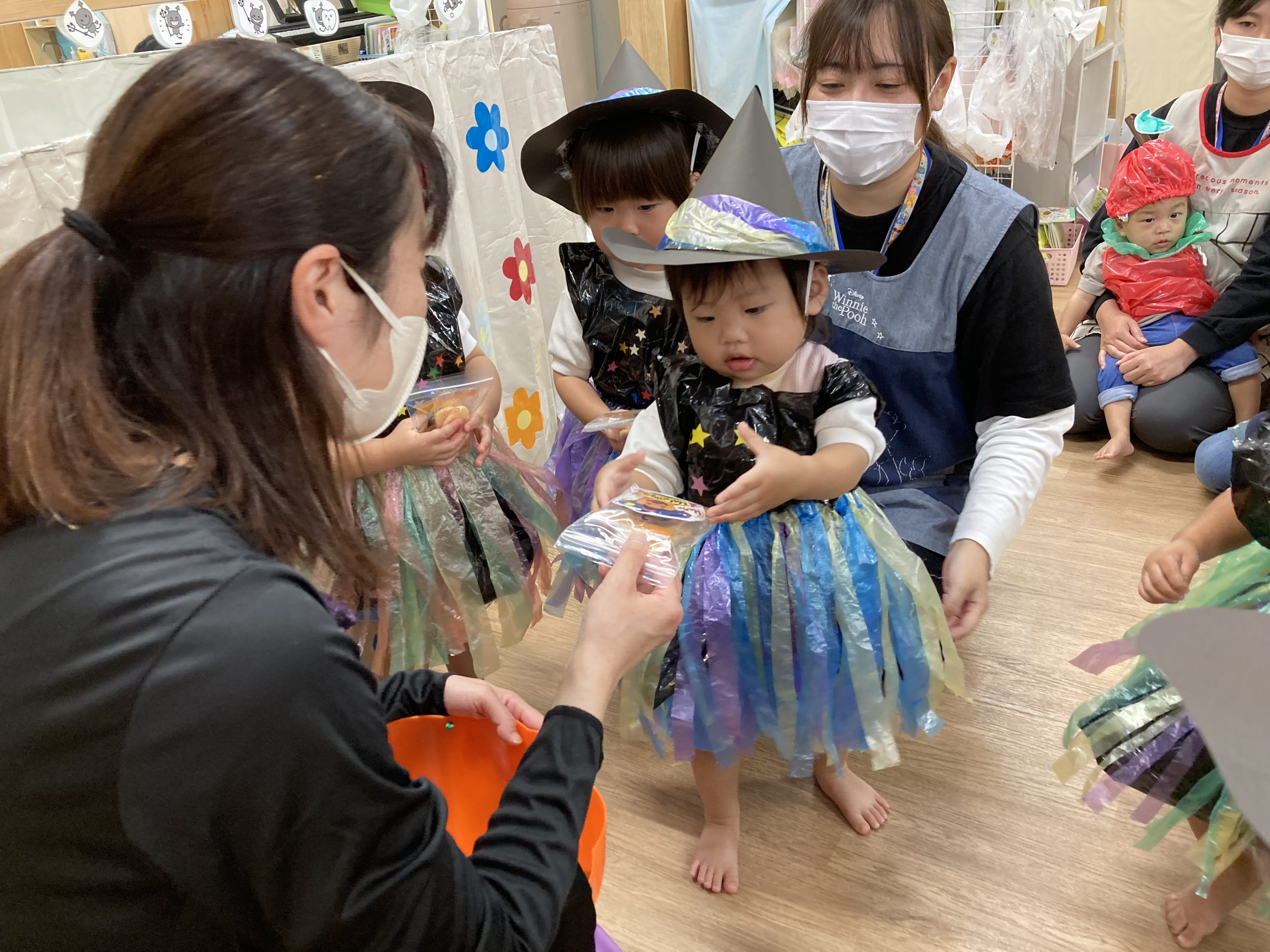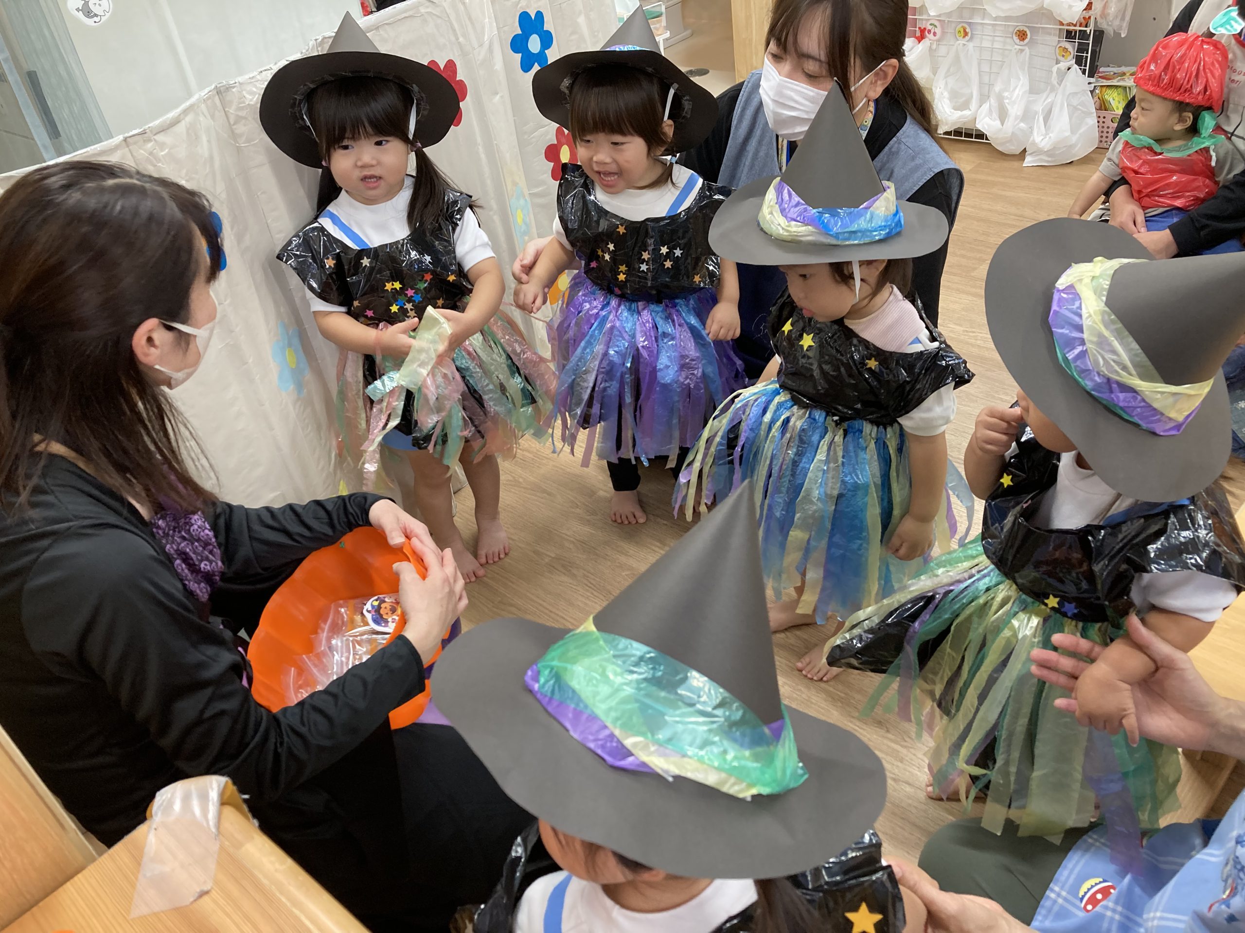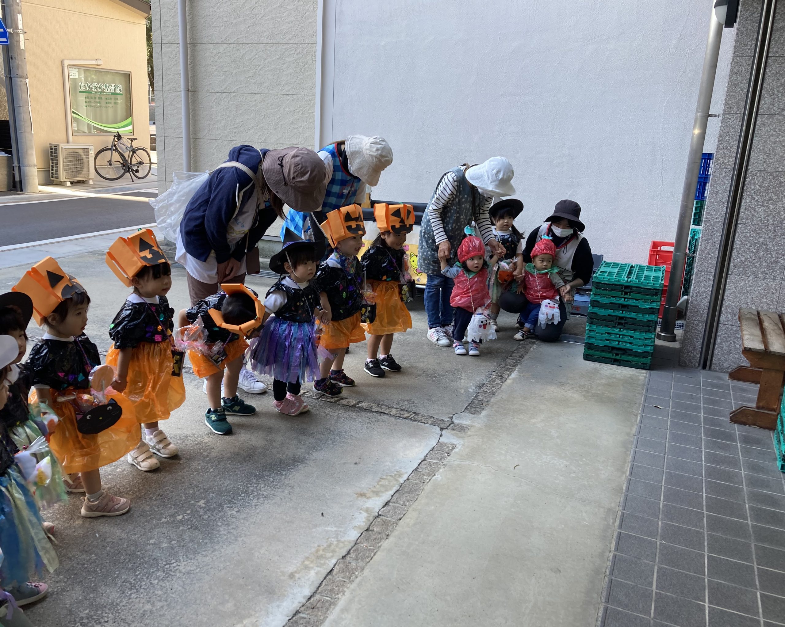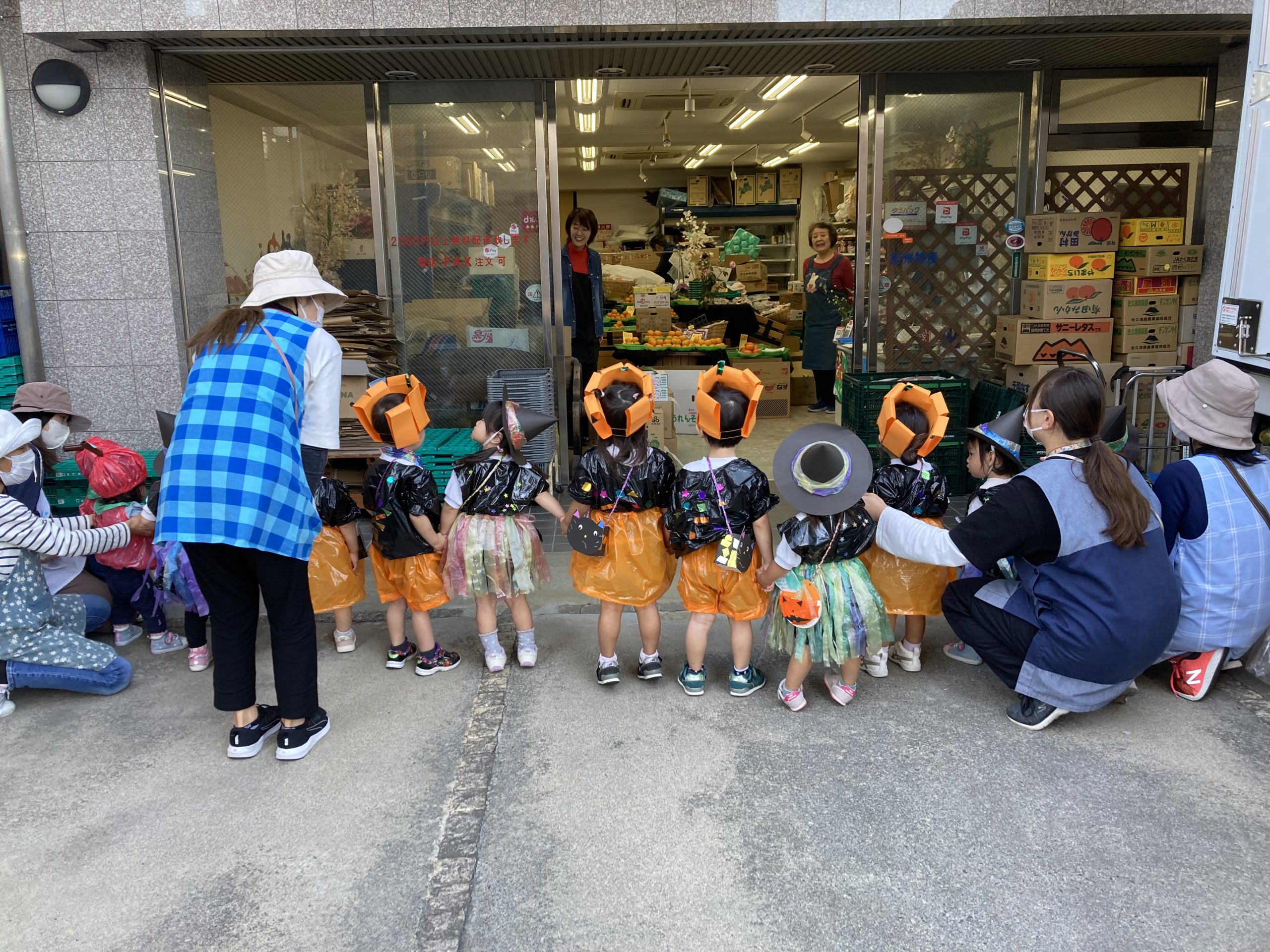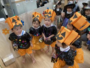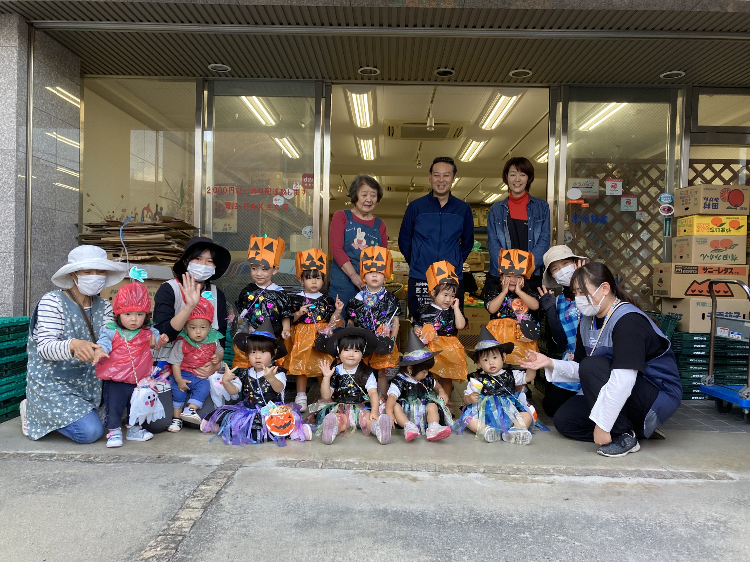 HAPPY HALLOWEEN👻2023年10月31日(火) 今日はハロウィンです🎵 子ども達は、早速衣装に着替えてハロウィンを楽しみました🎶 まずは、朝のおやつをもらいにいきました。 「トリックオアトリート おかしくれなきゃイタズラしちゃうぞ❕❕」 こぐま組 うさぎ組 ひよこ組 衣装を脱いで、朝のおやつを食べよう~ さぁ~えんどう食料品店さんへ行くよ~❕❕ 「せーのっ!」 「トリックオアトリート おかしくれなきゃイタズラしちゃうぞ❕❕」 えんどう食料品店さんと記念写真🎵 えんどう食料品店さんいつもありがとうございます。 うの家に行って記念写真♪ 散歩中に「可愛い~♪」と言われて大喜びの子ども達でした🎶 👻 HAPPY HALLOWEEN 👻 « お芋ほり🍠 10月の誕生会🎶 »